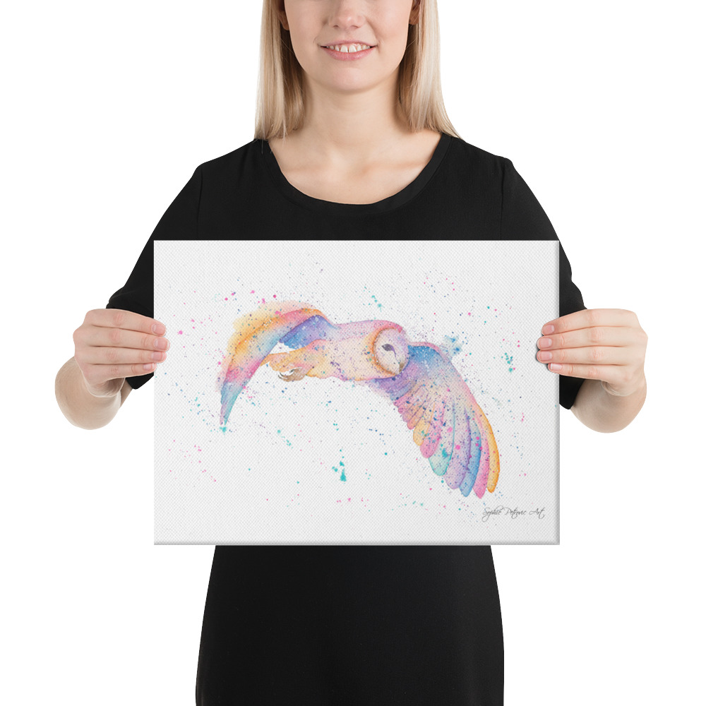 Looking to add a little flair to your room or office? Look no further—this Barn Owl Canvas features a vivid, fade-resistant print that you’re bound to fall in love with. Capturing the silent and ethereal spirit of our watercolour Barn Owl, this piece brings a touch of mysterious, twilight-inspired charm to any wall.