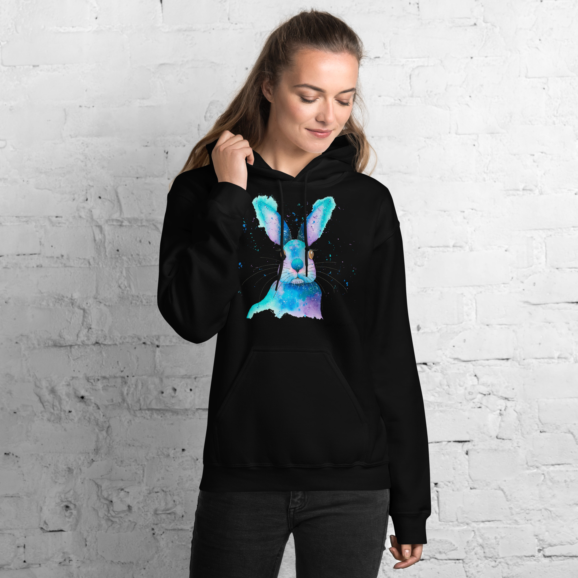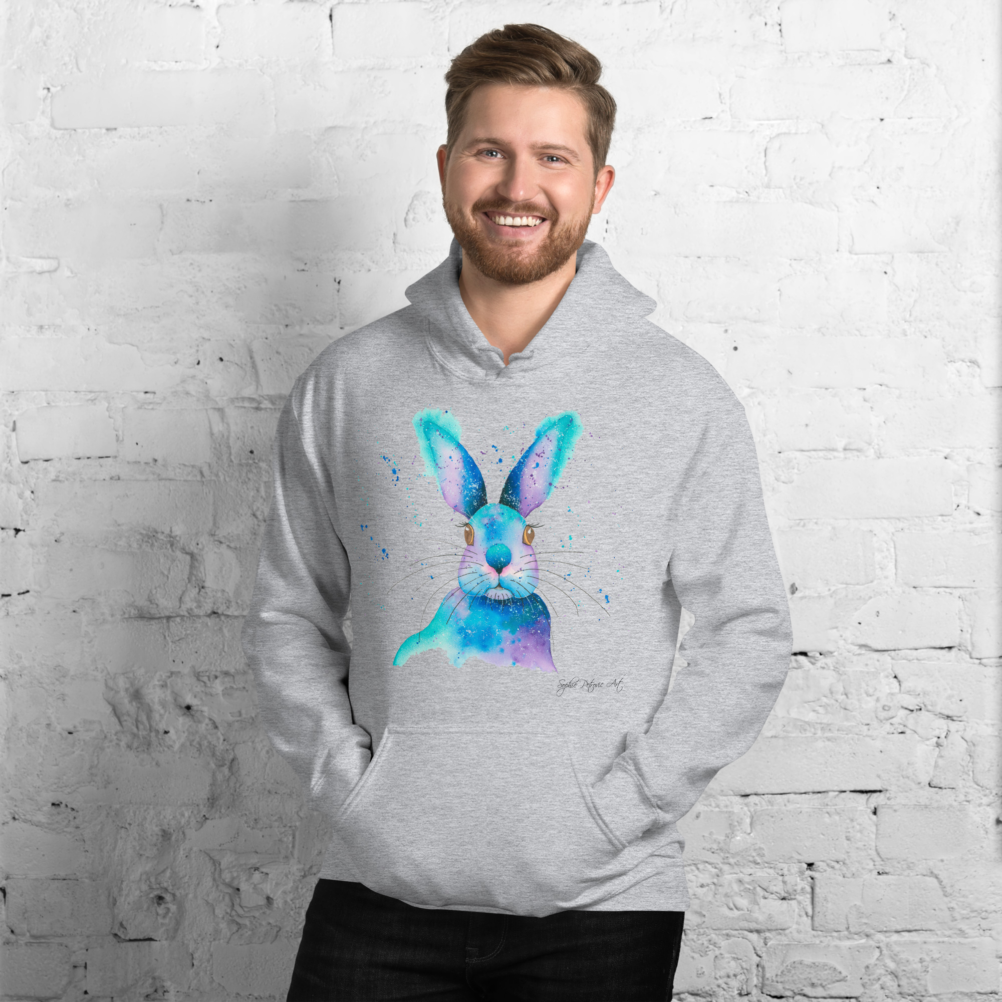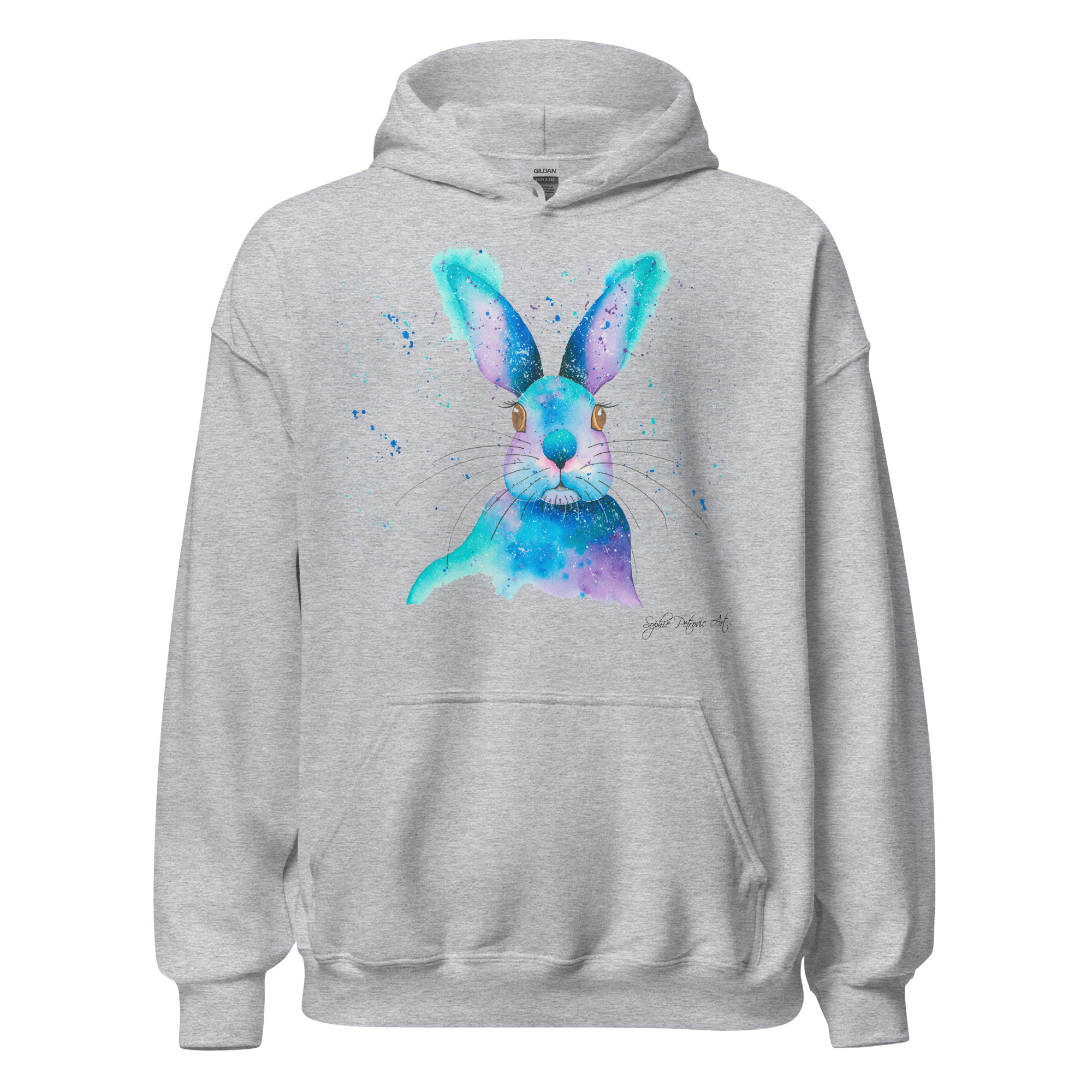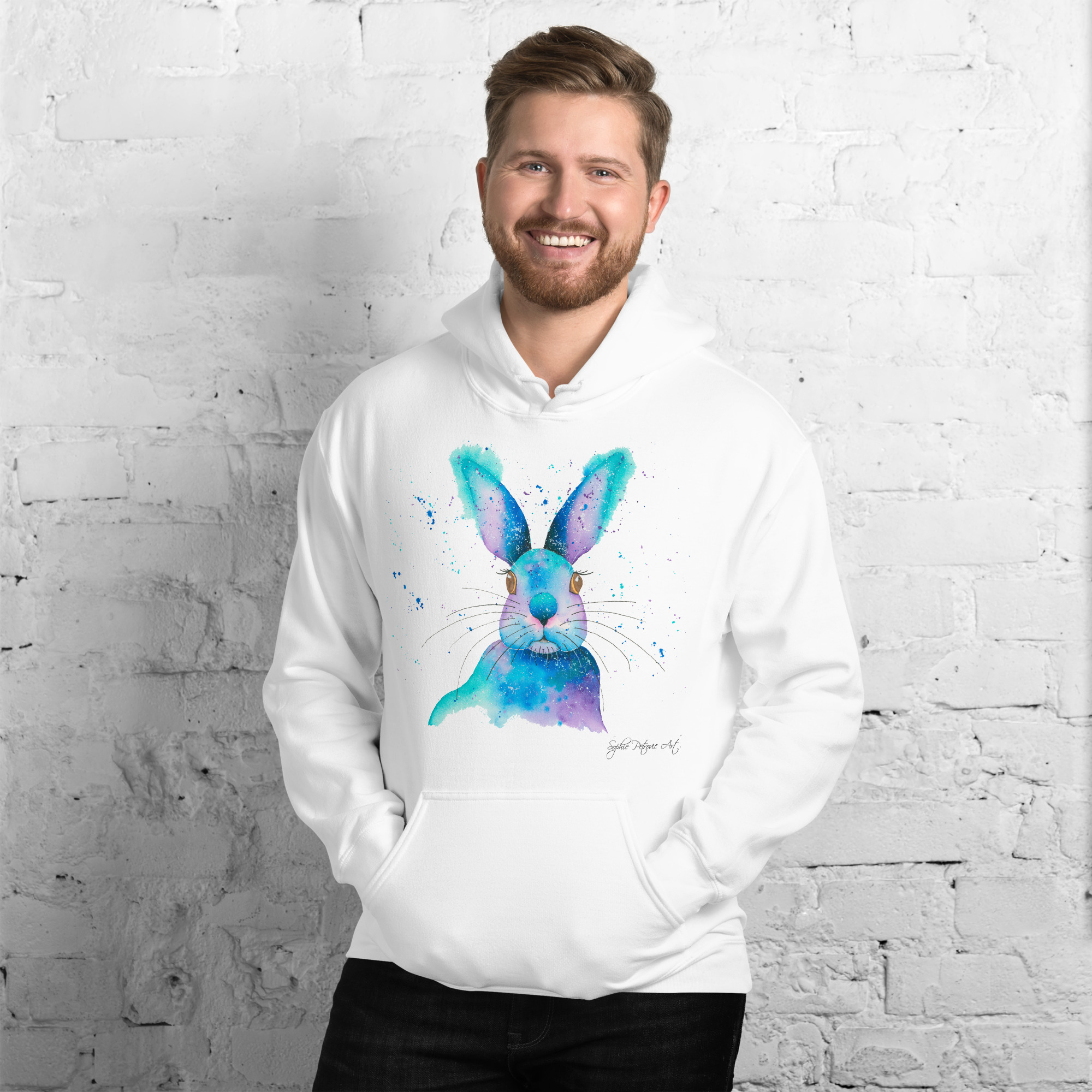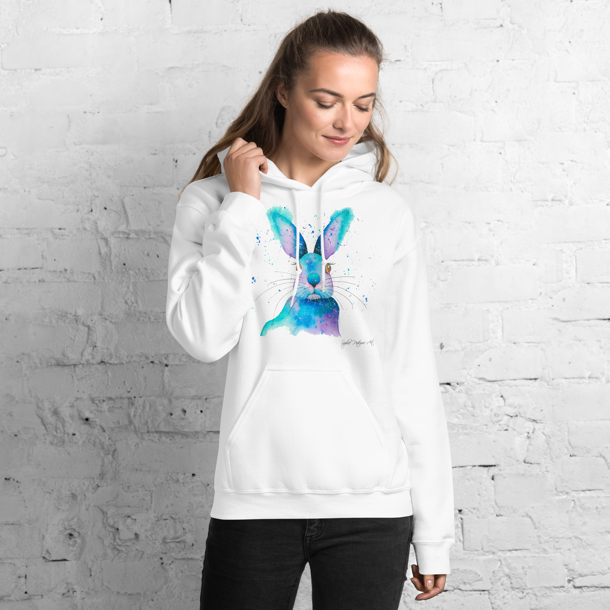 Everyone needs a cozy go to hoodie to curl up in, so go for one that’s soft, smooth, and stylish. Featuring the Blue Rabbit from our watercolour collection, this hoodie brings a soft blend of natural grace and vibrant, colourful elegance to your wardrobe. It’s the perfect choice for cooler evenings, coastal walks, or simply relaxing at home.