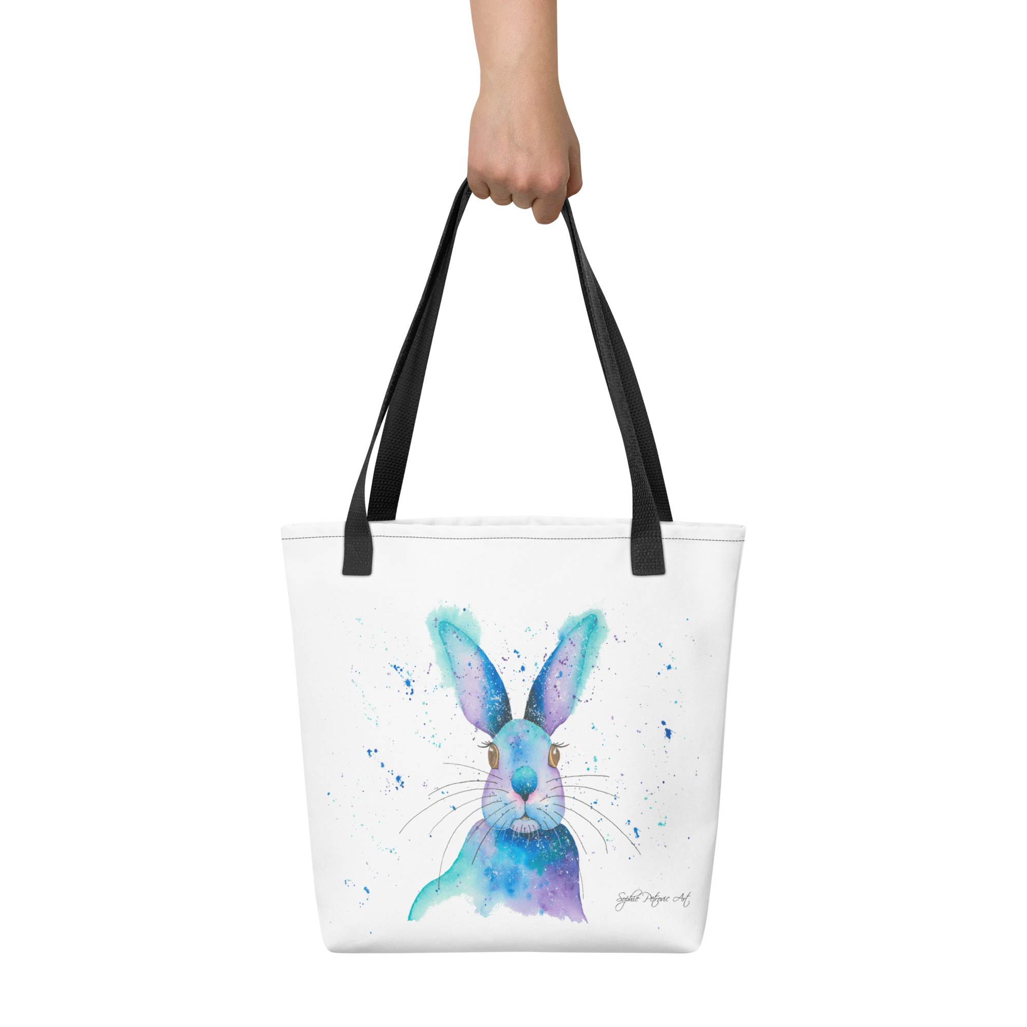 Carry a piece of art wherever you go with our Blue Rabbit Tote Bag, a versatile and comfortable addition to your daily look. Featuring the whimsical and dream-like Blue Rabbit from our watercolour collection, this bag is printed on both sides, ensuring its magical, moonlit-inspired charm is visible from every angle.