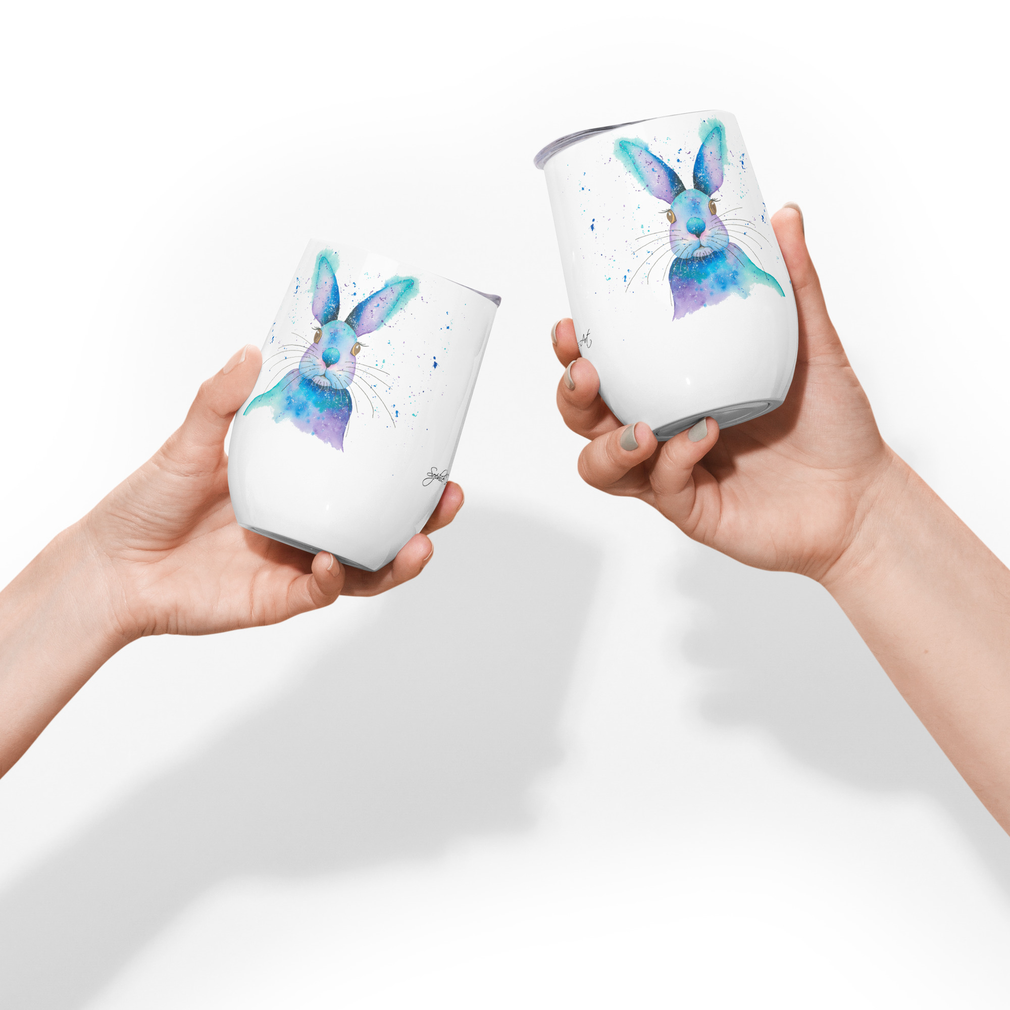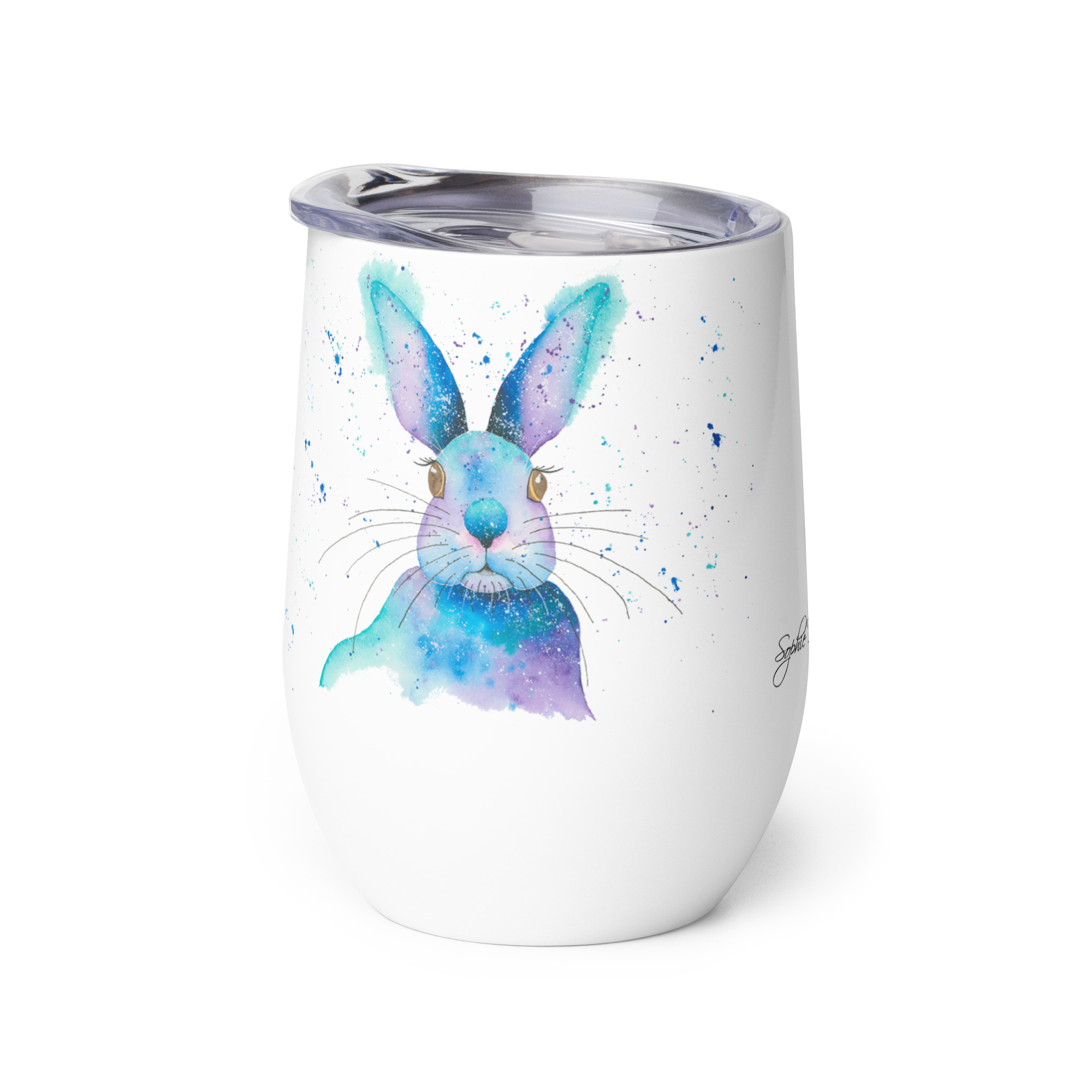 What’s an outdoor party without a wine tumbler to keep a drink fresh and at just the right temperature? Forget breakable glasses, give this uniquely shaped wine tumbler a chance and have fun with friends without worry. Featuring the Blue Rabbit from our watercolour collection, this tumbler brings a splash of whimsical, moonlit meadow charm to your social gatherings.