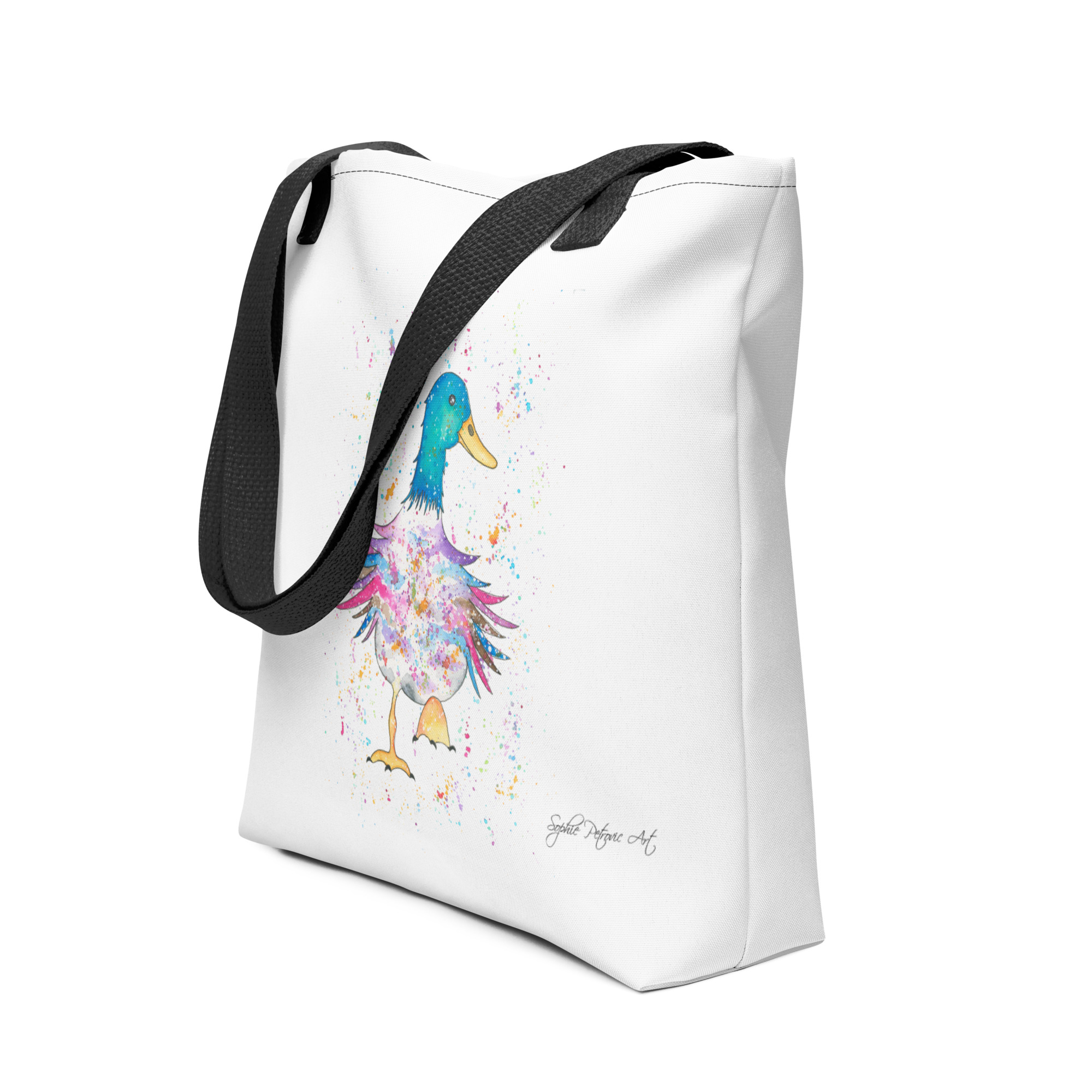 Carry a piece of art wherever you go with our Dave the Duck Tote Bag, a versatile and comfortable addition to your daily look. Featuring the cheerful and charismatic duck from our watercolour collection, this bag is printed on both sides, ensuring his bright, pond-side personality is visible from every angle.