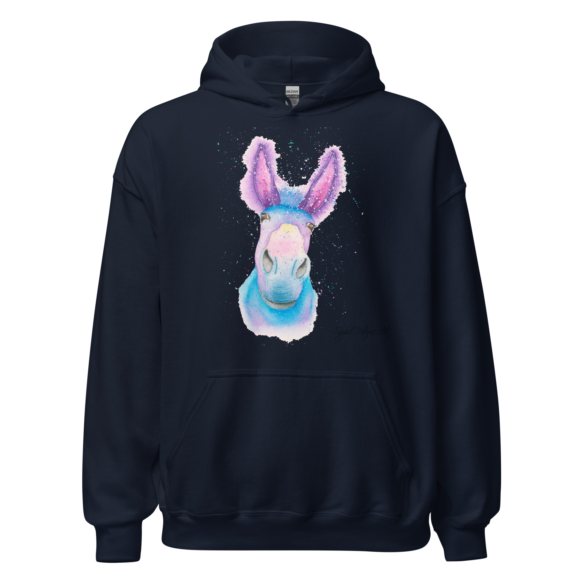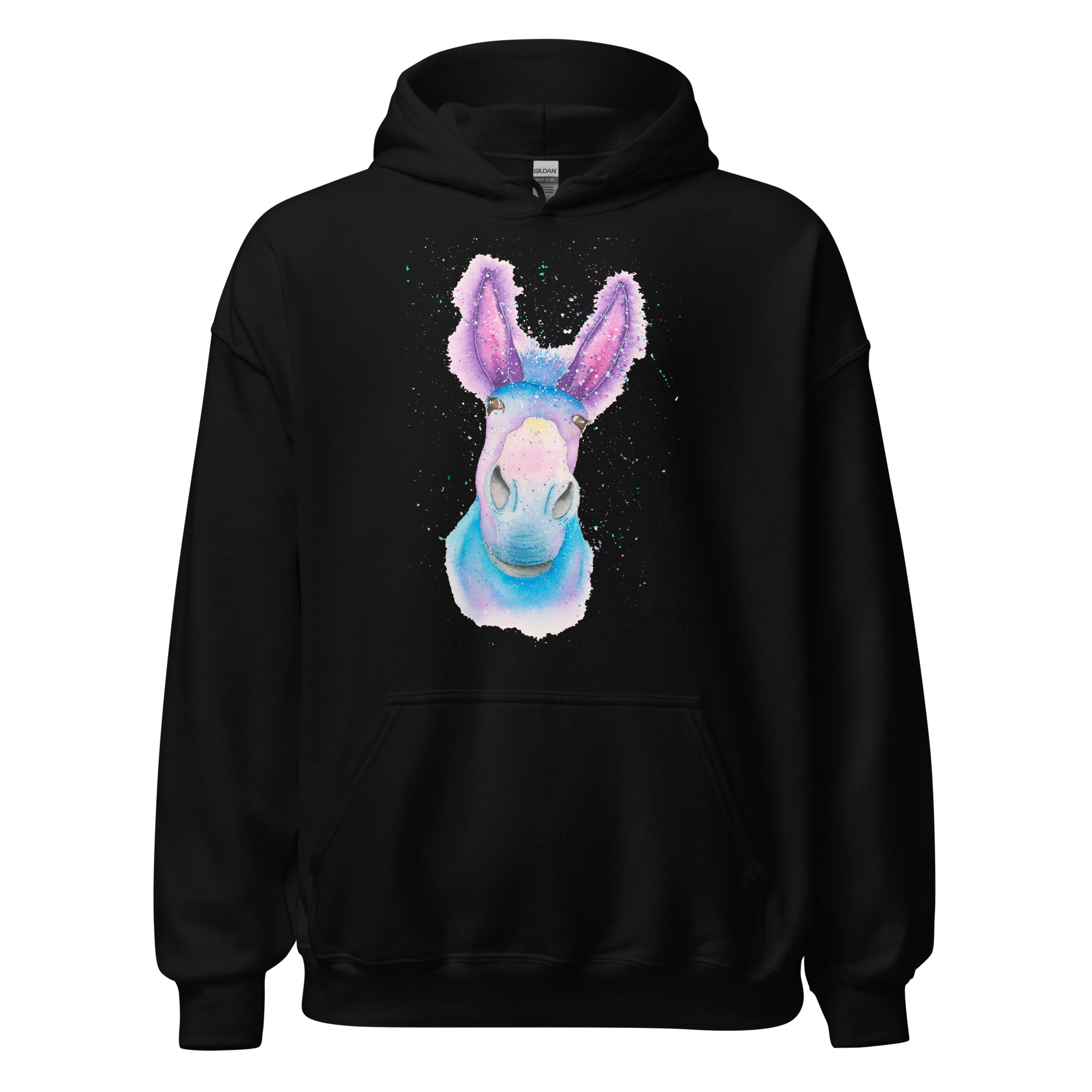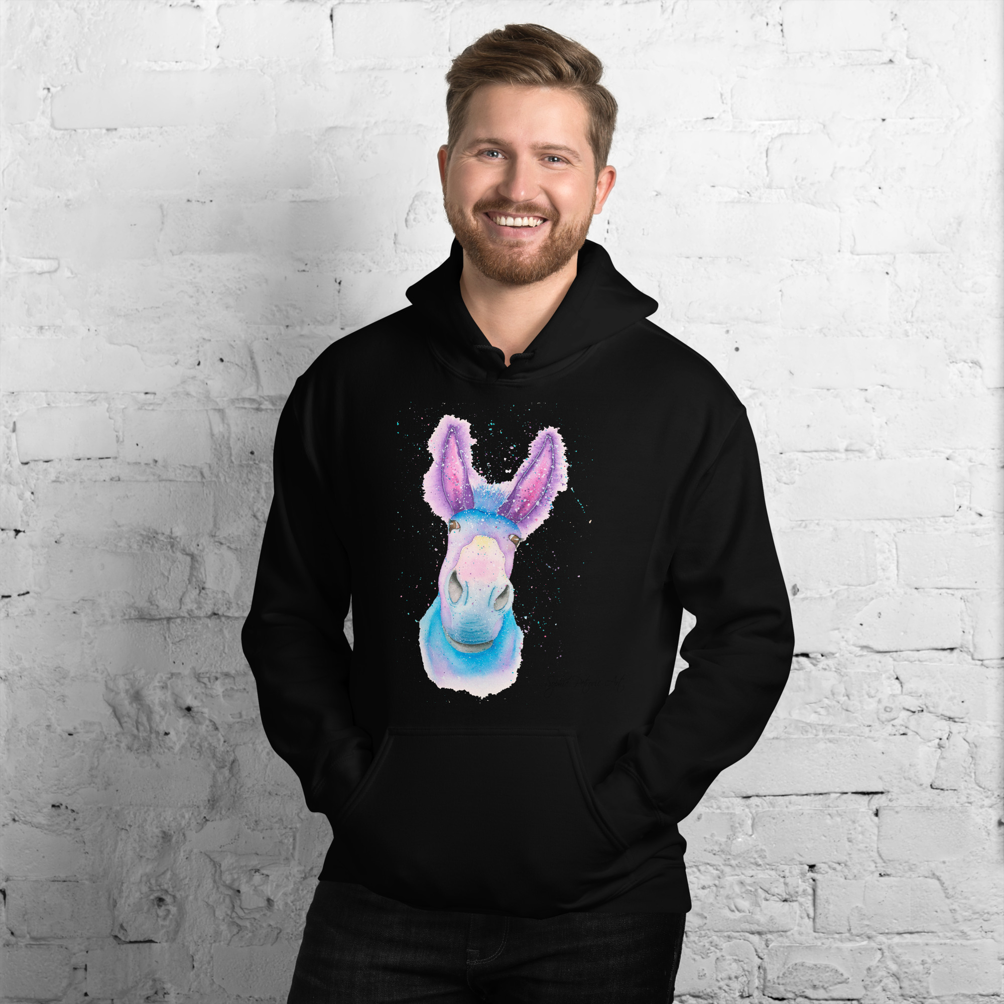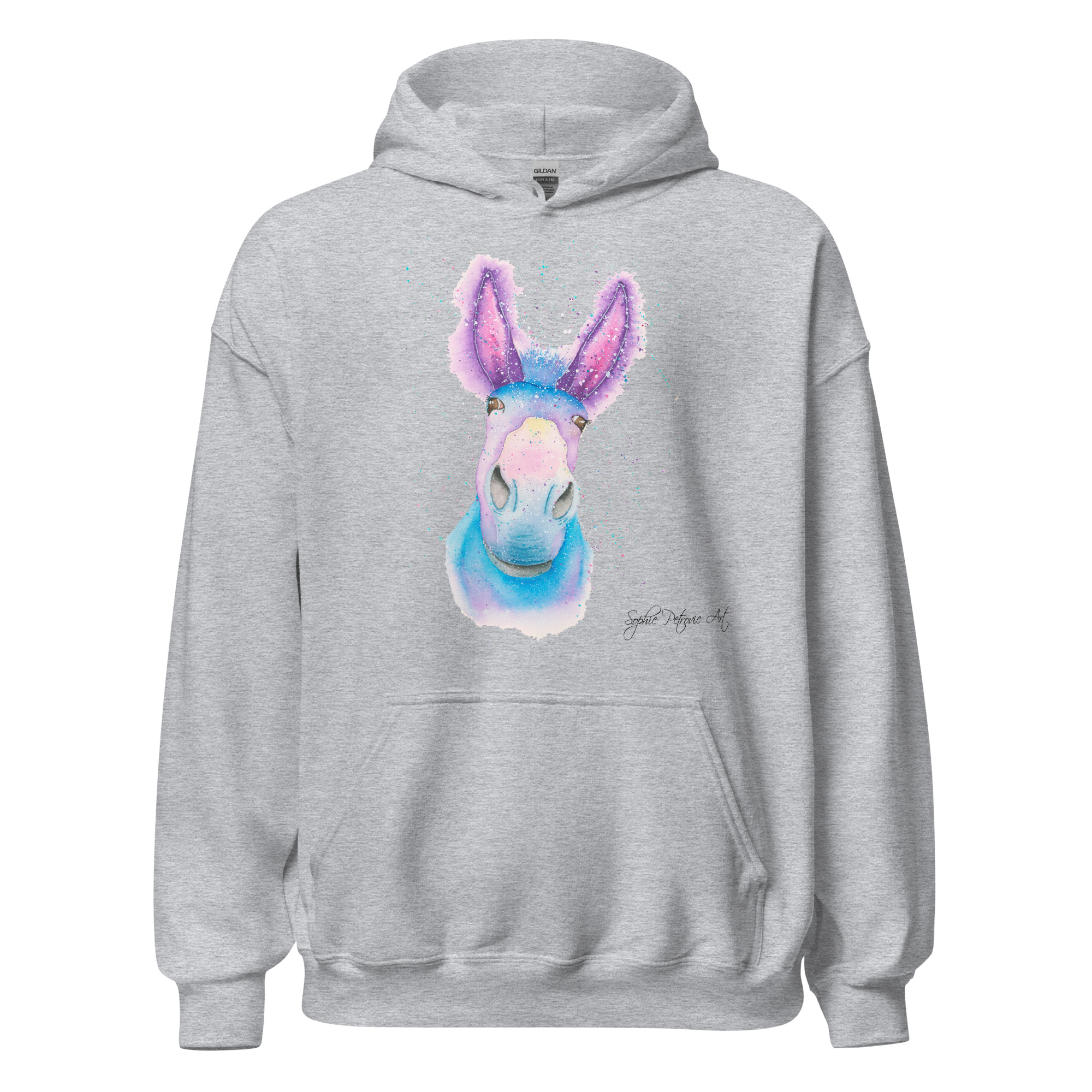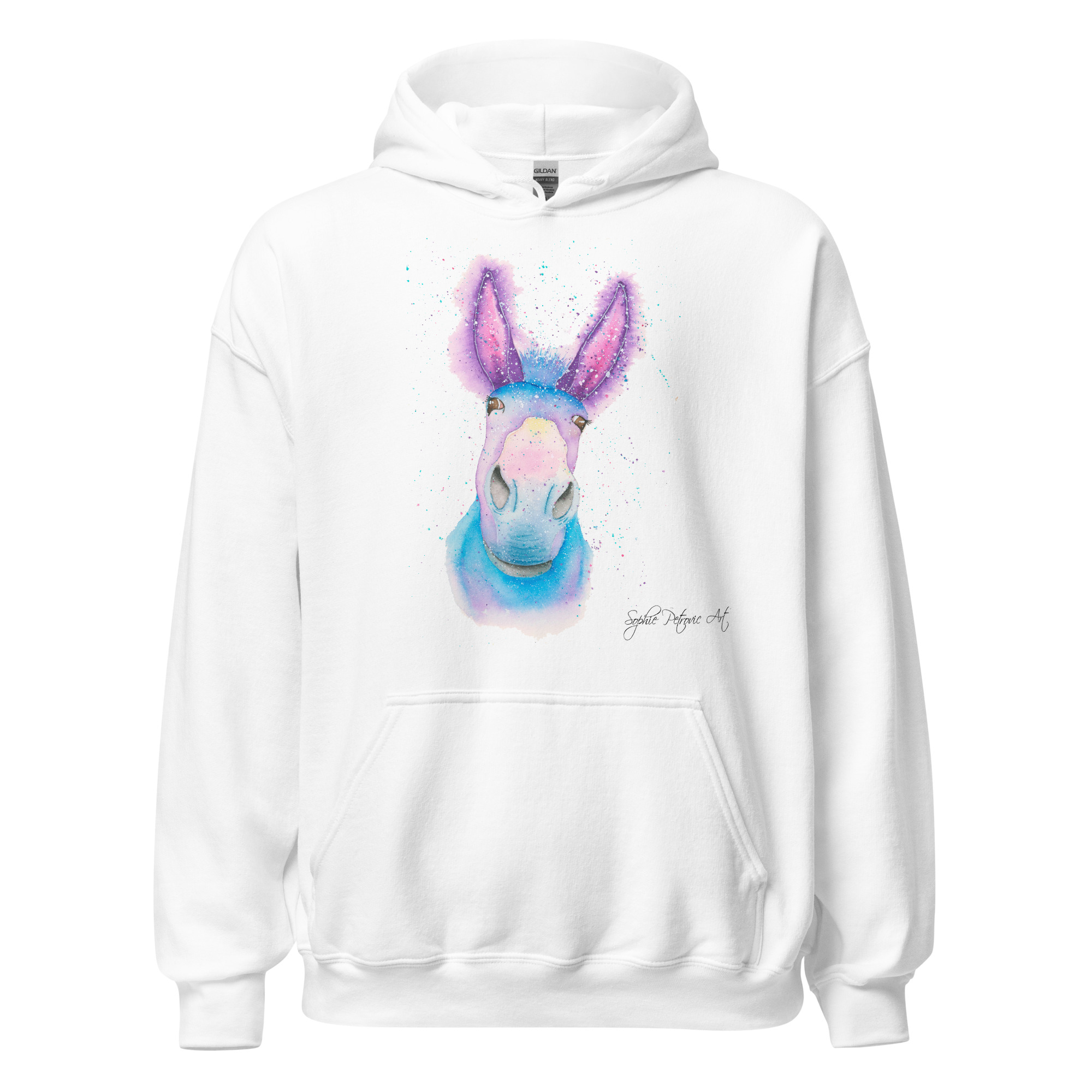Everyone needs a cozy go to hoodie to curl up in, so go for one that’s soft, smooth, and stylish. Featuring Derick The Donkey from our watercolour collection, this hoodie brings a soft blend of natural grace and vibrant, colourful elegance to your wardrobe. Itโs the perfect choice for cooler evenings, coastal walks, or simply relaxing at home.