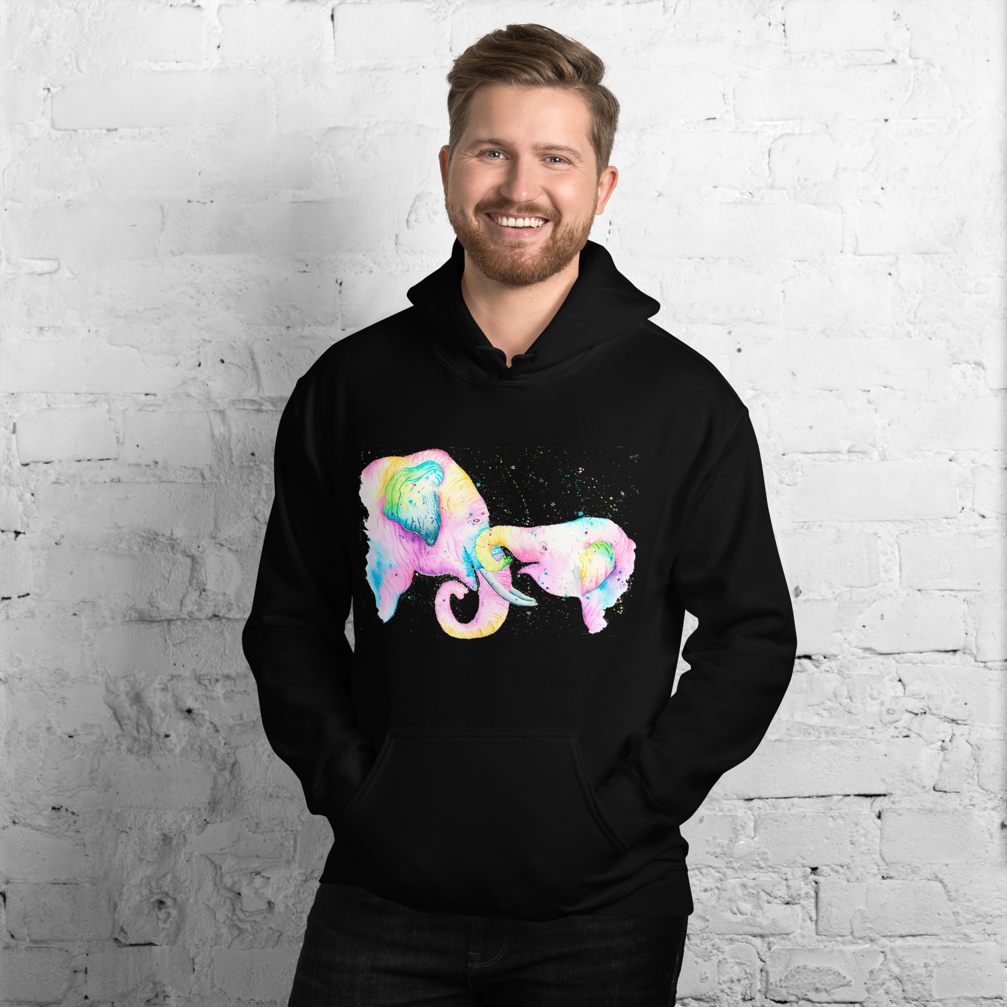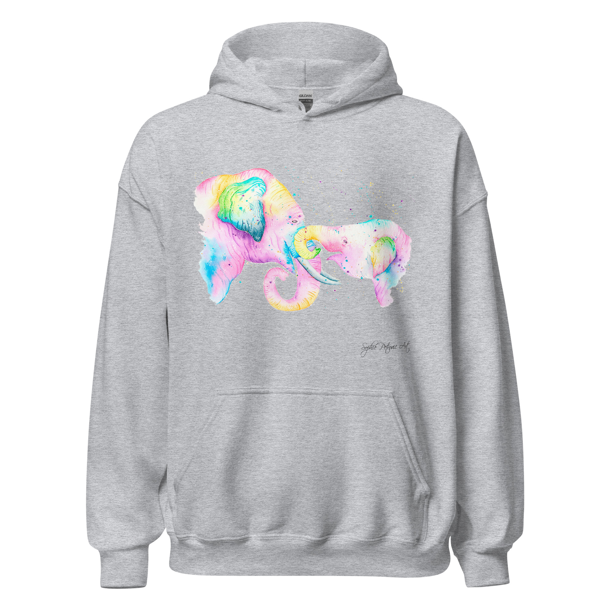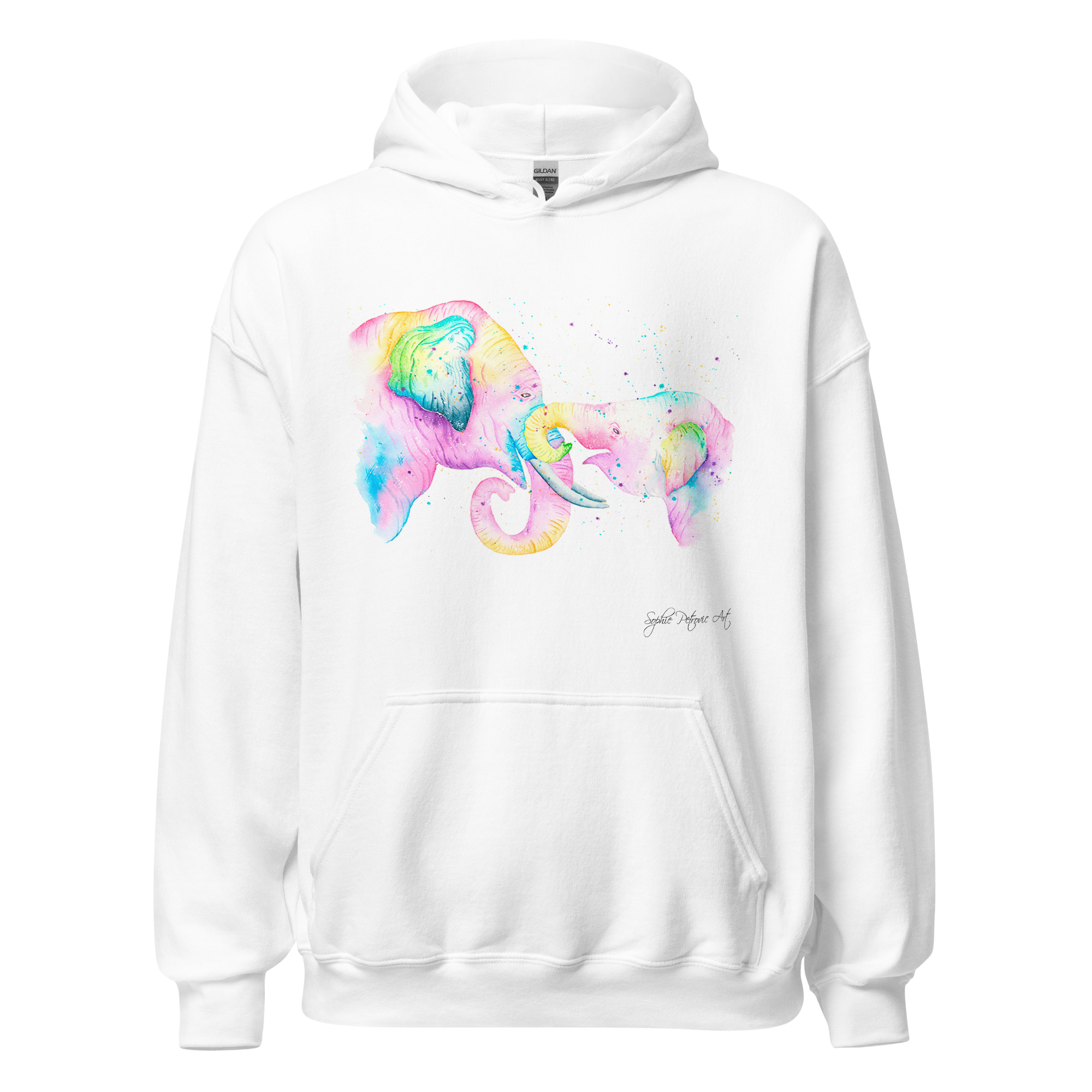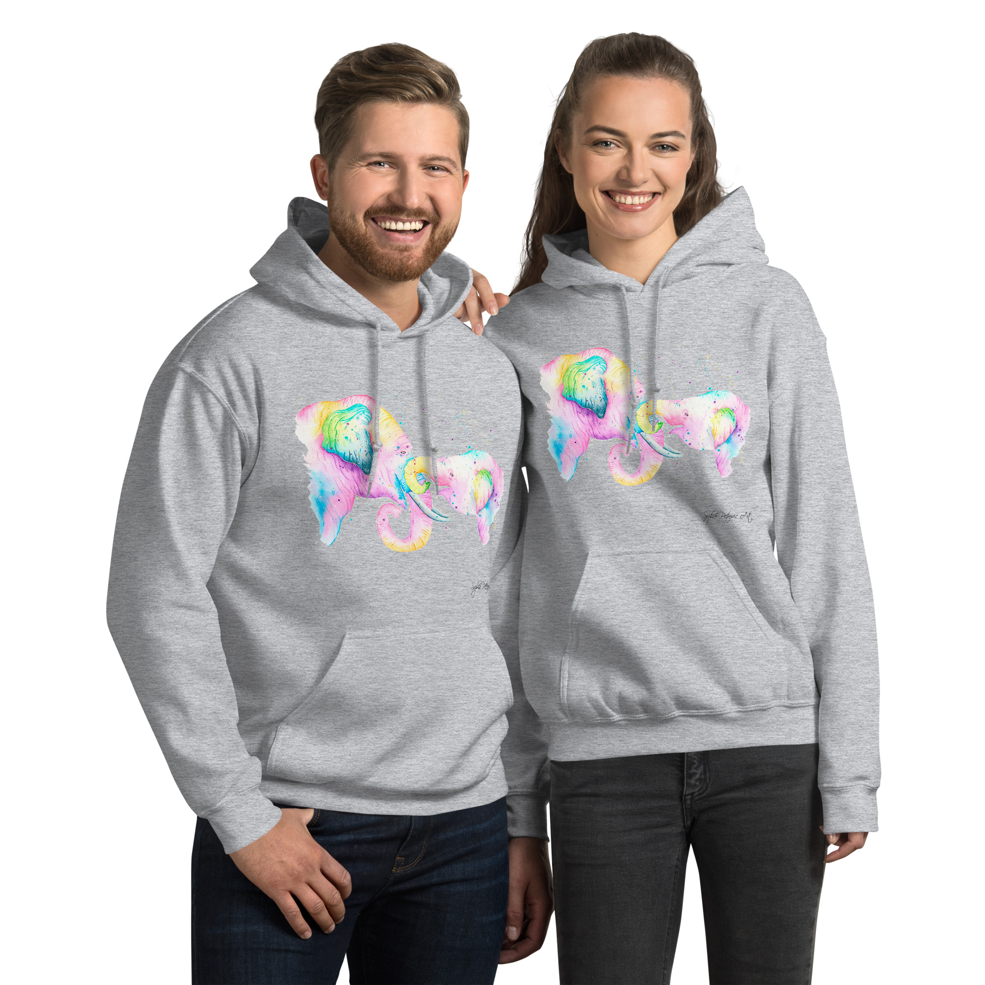 Everyone needs a cozy go to hoodie to curl up in, so go for one that’s soft, smooth, and stylish. Featuring the Elephants from our watercolour collection, this hoodie brings a soft blend of natural grace and vibrant, colourful elegance to your wardrobe. It’s the perfect choice for cooler evenings, coastal walks, or simply relaxing at home.
