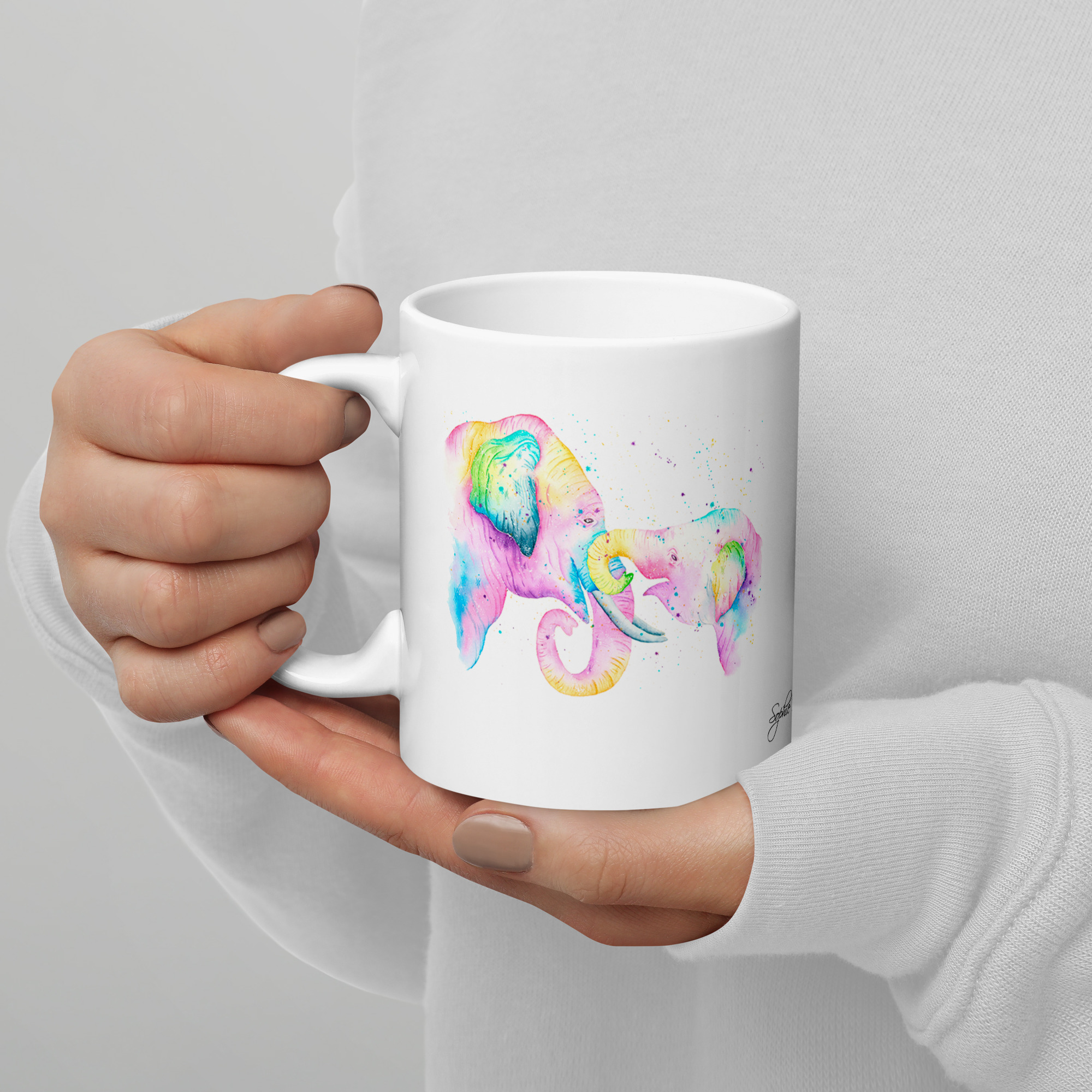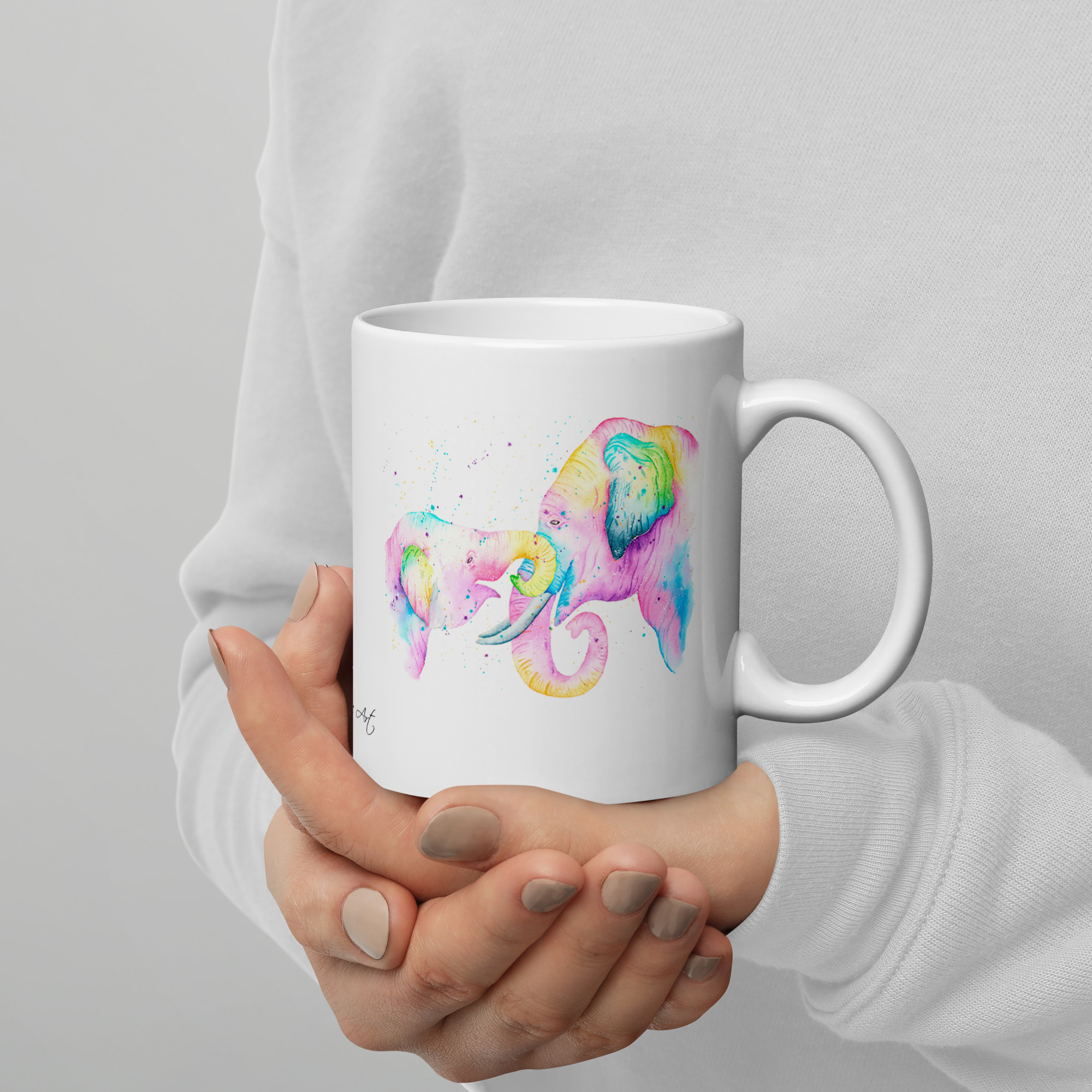 It features a vibrant watercolour illustration that I painted to capture the gentle and majestic spirit of these beautiful creatures. This mug is a lovely way to bring a little bit of nature and a sense of peace into your home or office. It is a thoughtful choice for birthdays, “thank you” gifts, or a special treat for anyone who loves elephants.