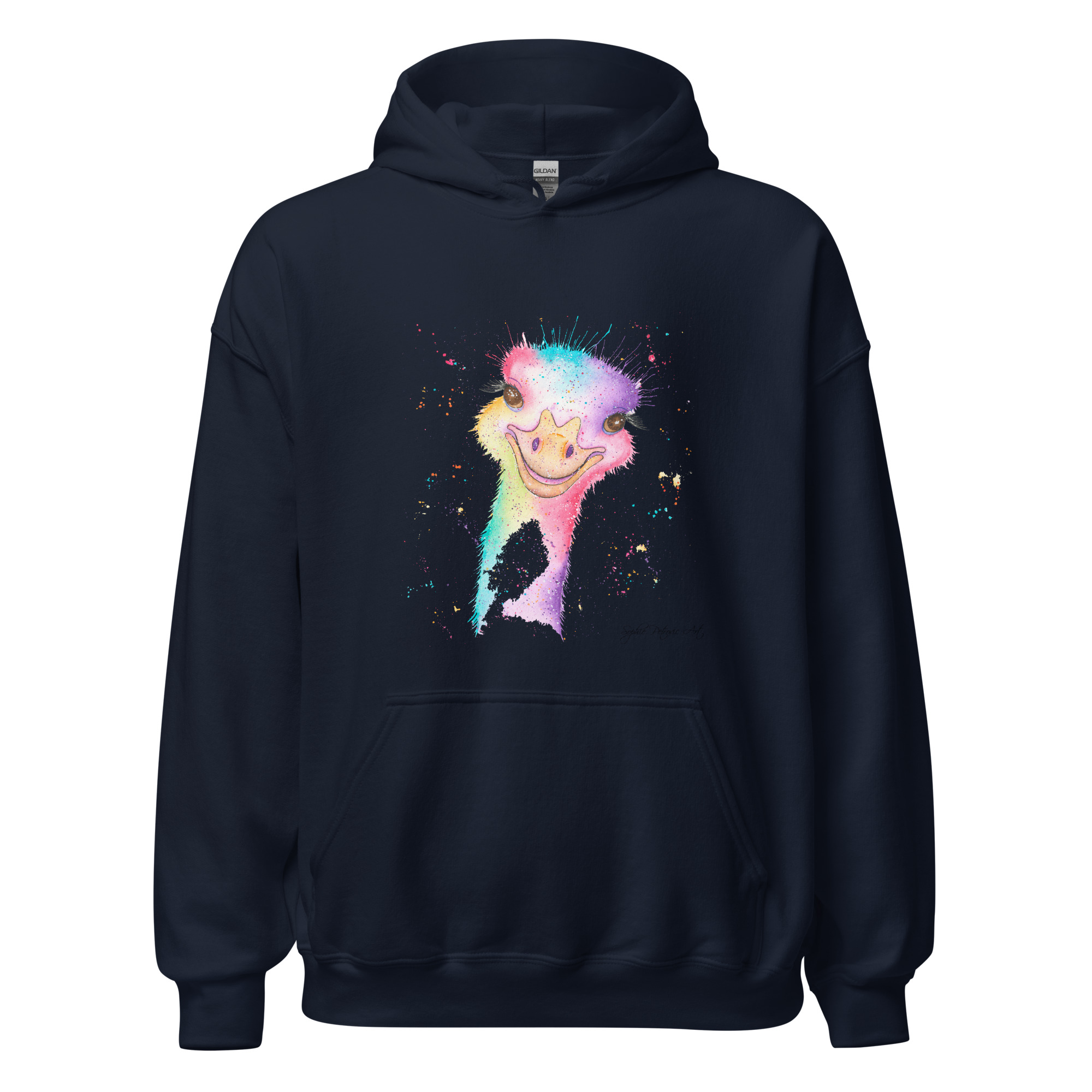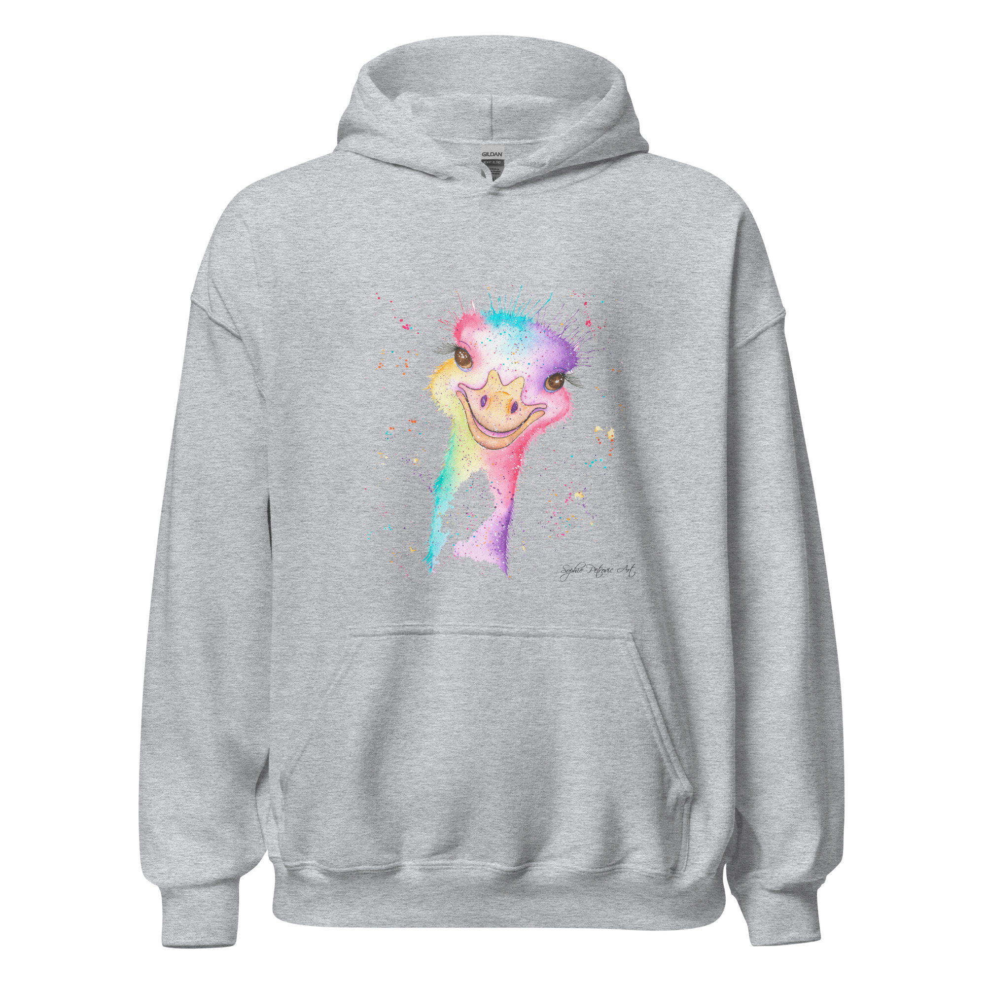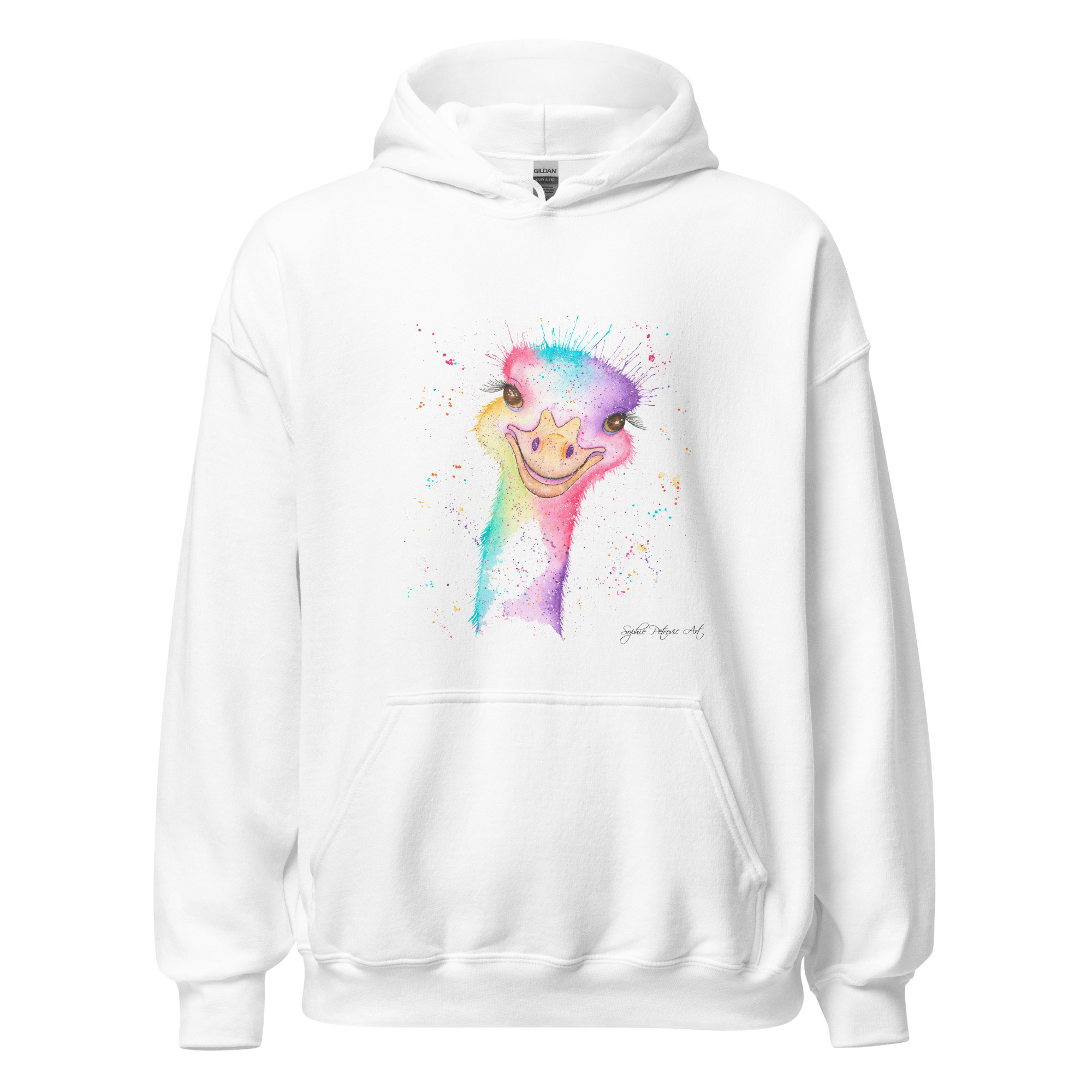Everyone needs a cozy go to hoodie to curl up in, so go for one that’s soft, smooth, and stylish. Featuring Emma The Ostrich from our watercolour collection, this hoodie brings a soft blend of natural grace and vibrant, colourful elegance to your wardrobe. It’s the perfect choice for cooler evenings, coastal walks, or simply relaxing at home.
