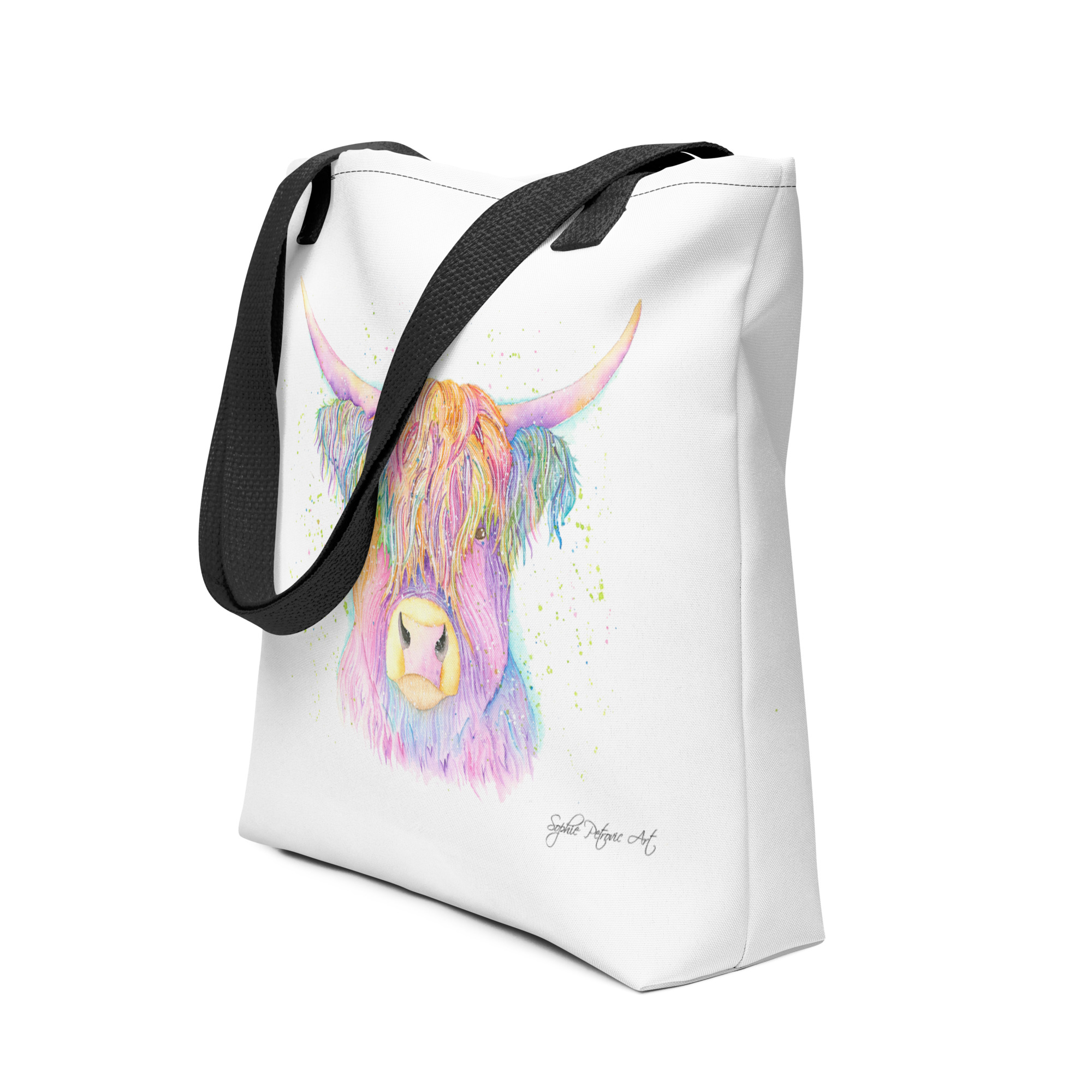 Carry a piece of art wherever you go with our Hank the Highland Cow Tote Bag, a versatile and comfortable addition to your daily look. Featuring the shaggy and iconic Highland Cow from our watercolour collection, this bag is printed on both sides, ensuring his rugged, heather-scented charm is visible from every angle.