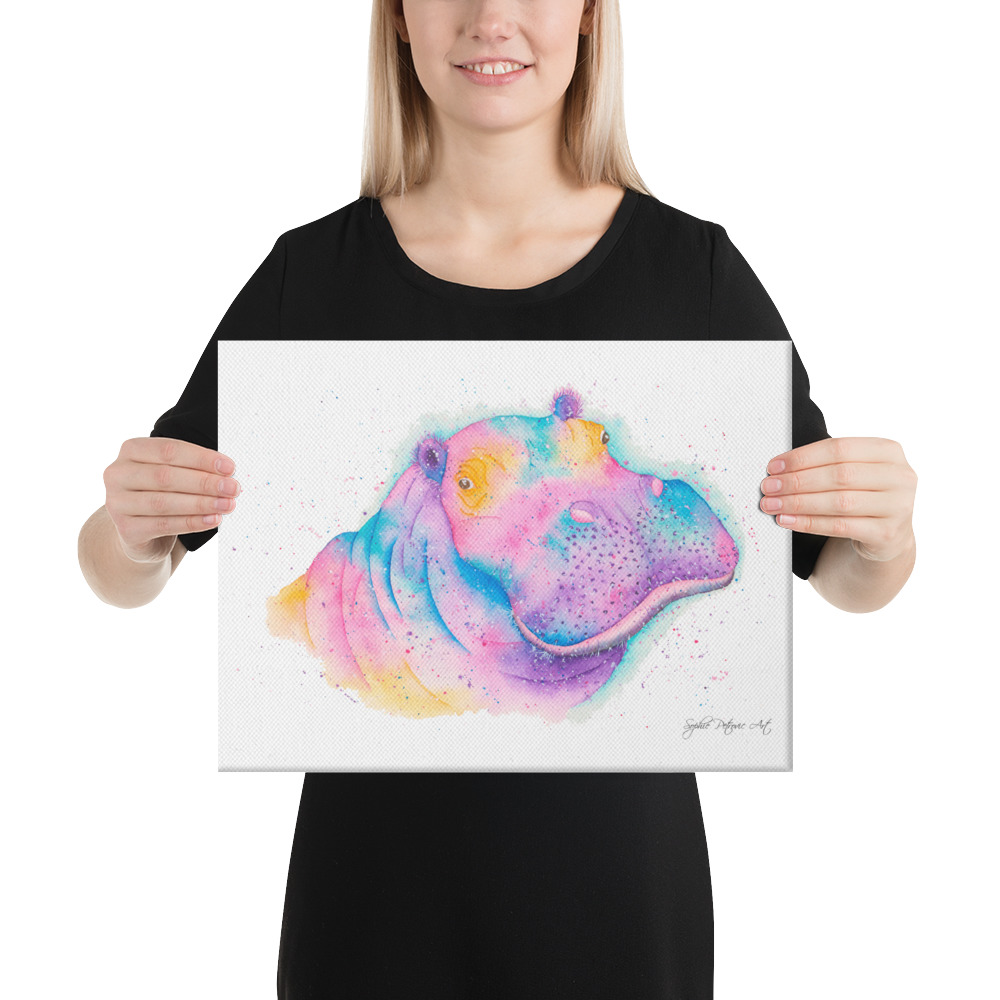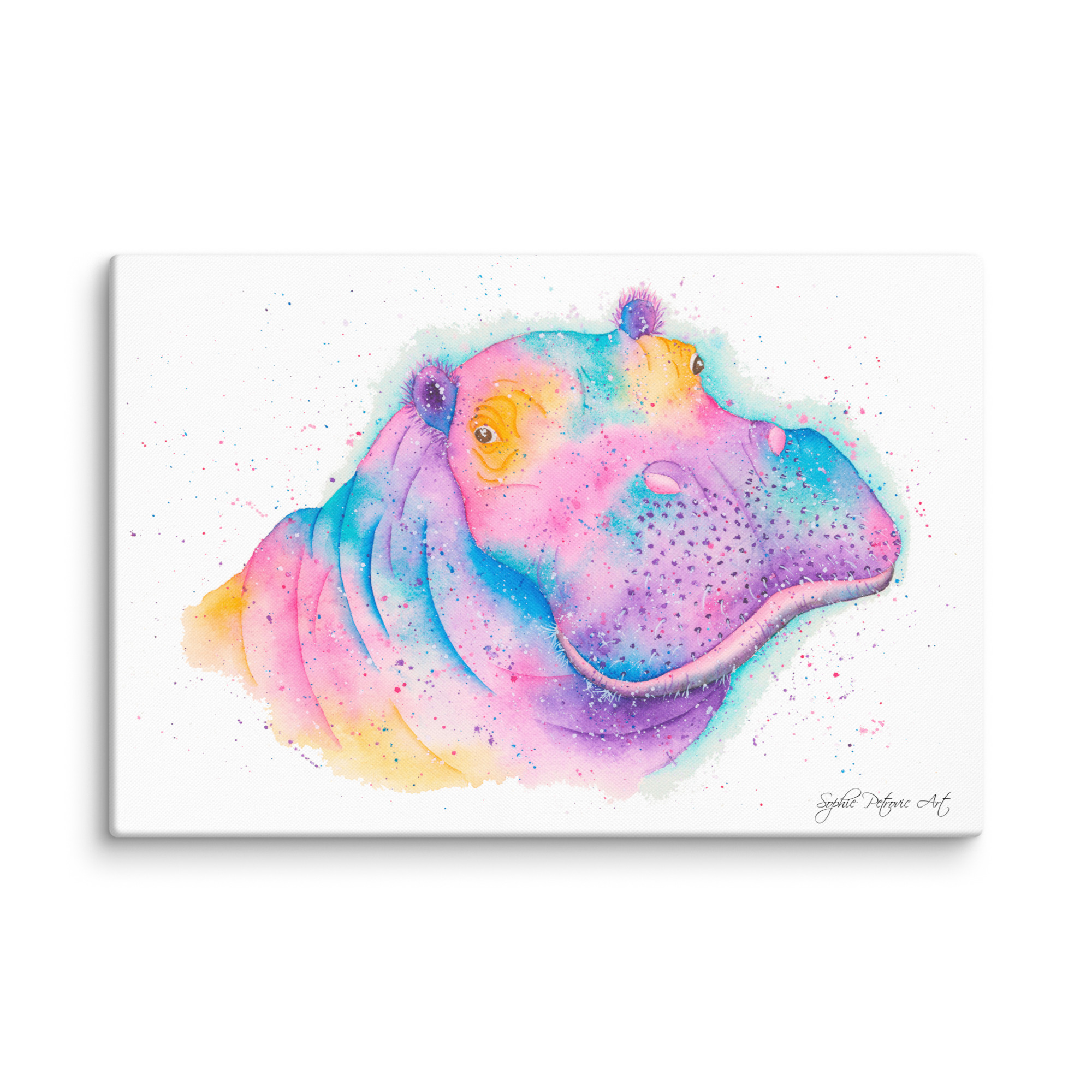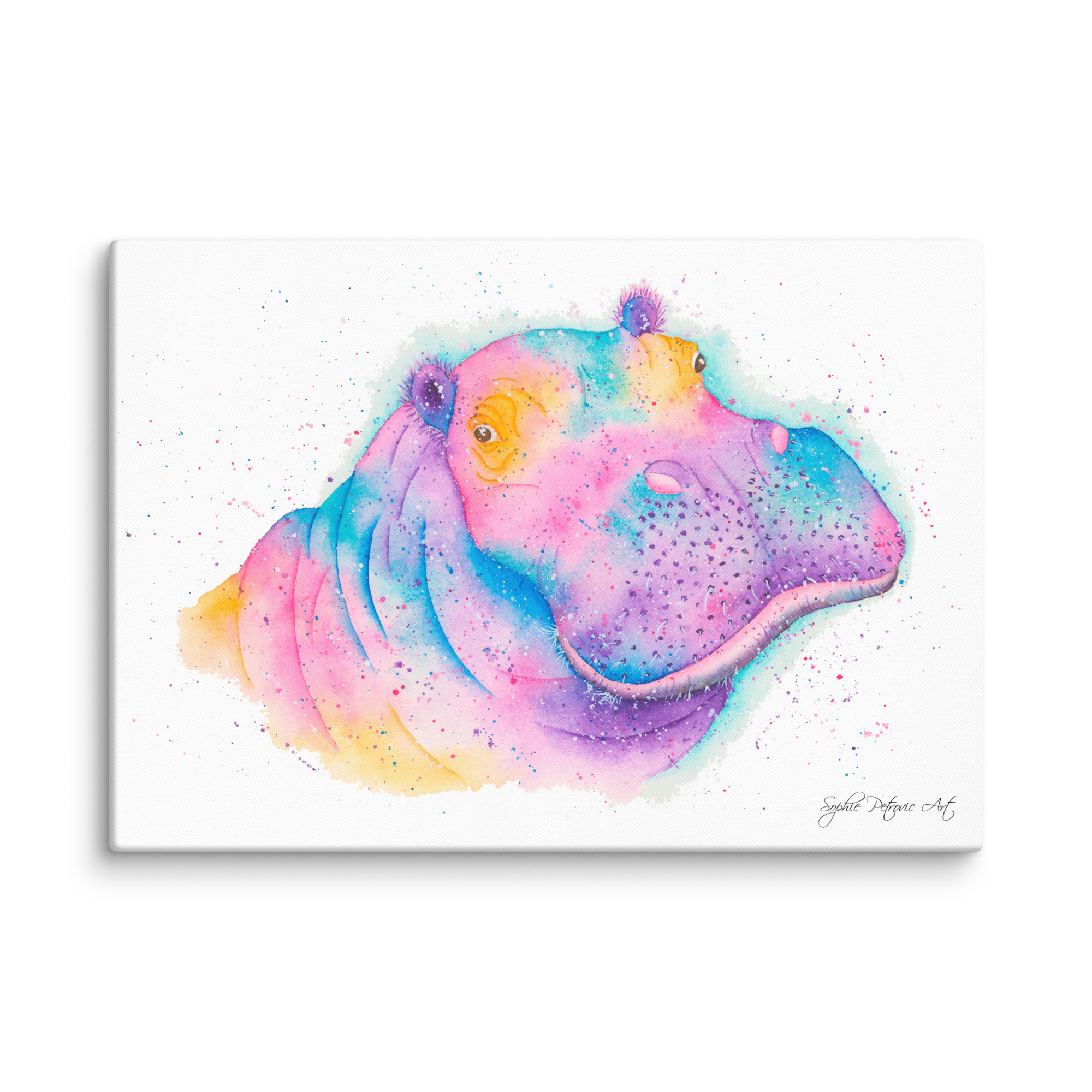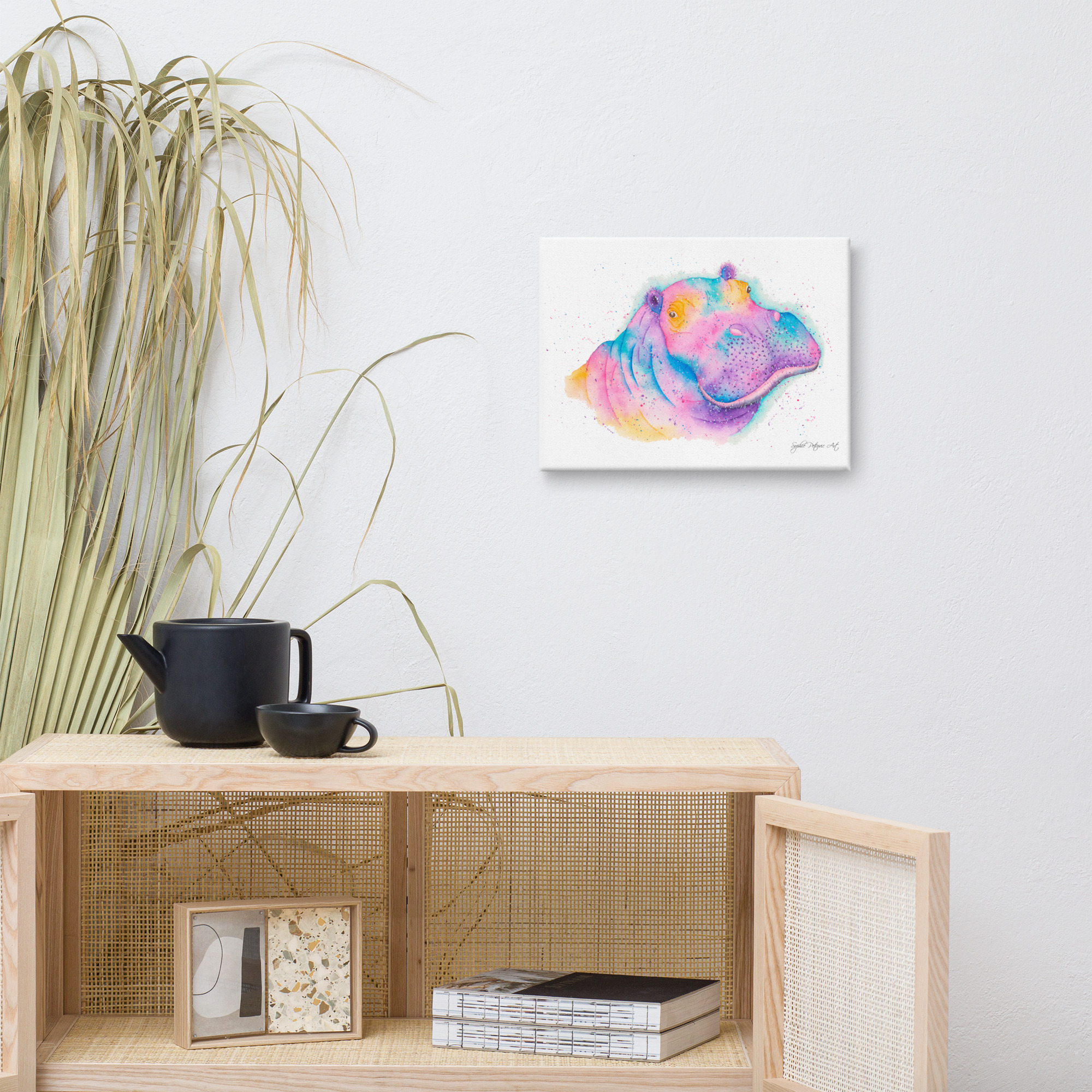 Looking to add a little flair to your room or office? Look no further—this Henry the Hippo Canvas features a vivid, fade-resistant print that you’re bound to fall in love with. Capturing the jolly and surprisingly graceful Henry from our watercolour collection, this piece brings a splash of playful, river-inspired charm to any wall.