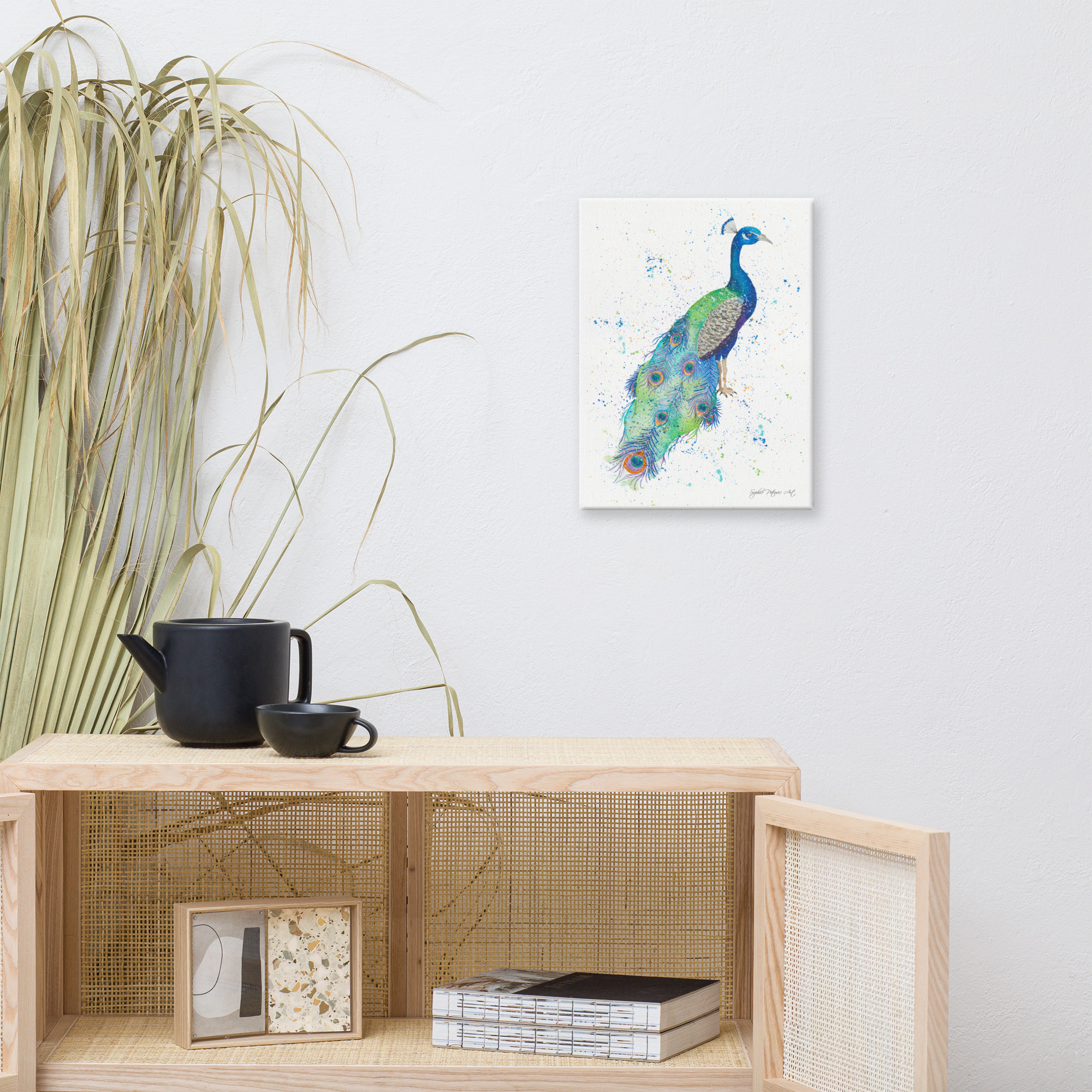 Looking to add a little flair to your room or office? Look no further—this Mr P The Peacock Canvas features a vivid, fade-resistant print that you’re bound to fall in love with. Capturing the regal and flamboyant Mr P from our watercolour collection, this piece brings a splash of grand, garden-inspired charm to any wall.