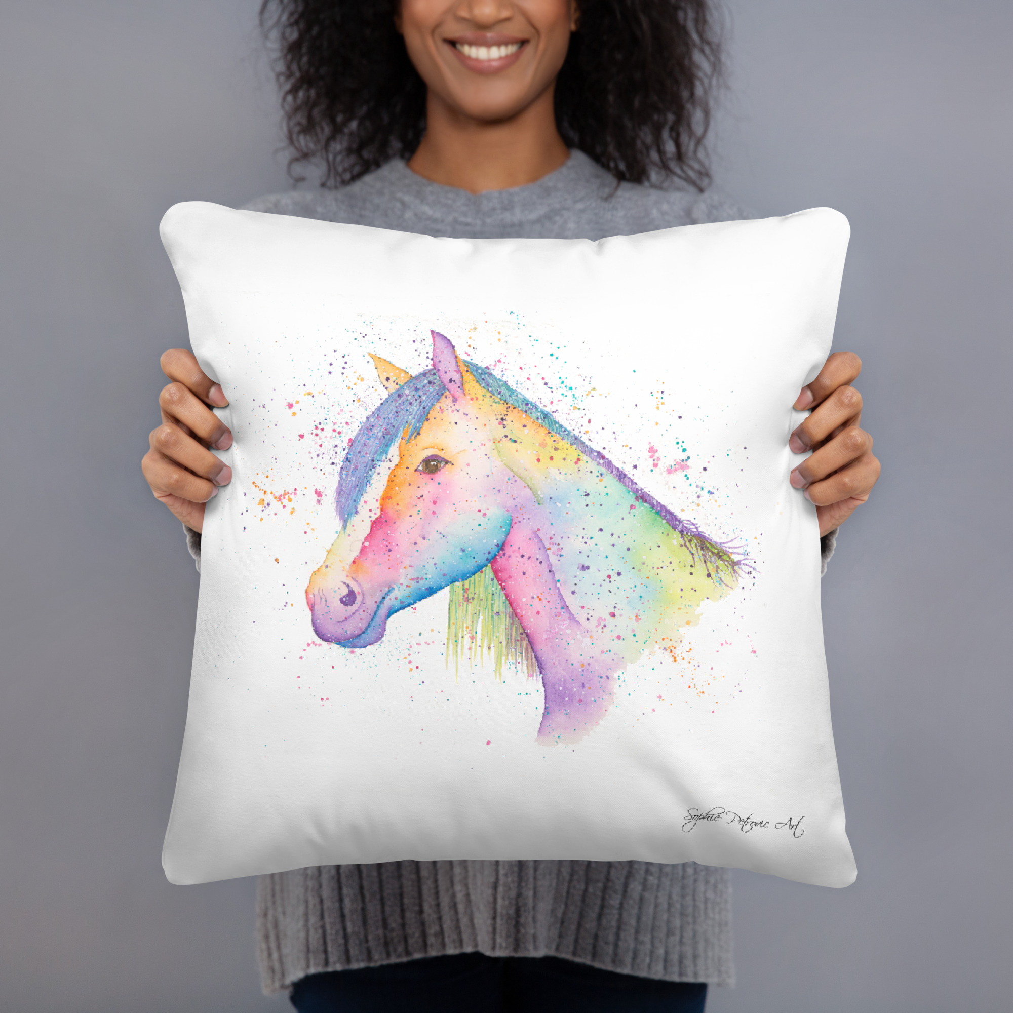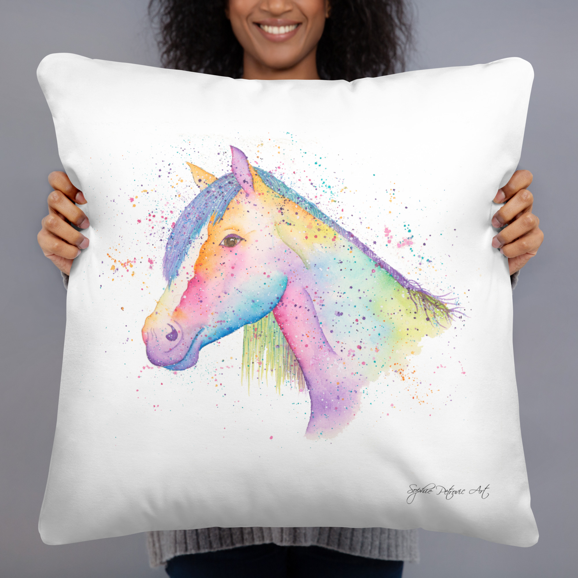 A thoughtfully placed accent can gently breathe life into any room, and this cushion is the perfect touch to do just that. Featuring Nikita The Horse from our watercolour collection, this piece brings a soft blend of natural grace and vibrant, colourful elegance to your favourite corner. Printed on both sides, the artwork ensures a beautiful view from any angle.