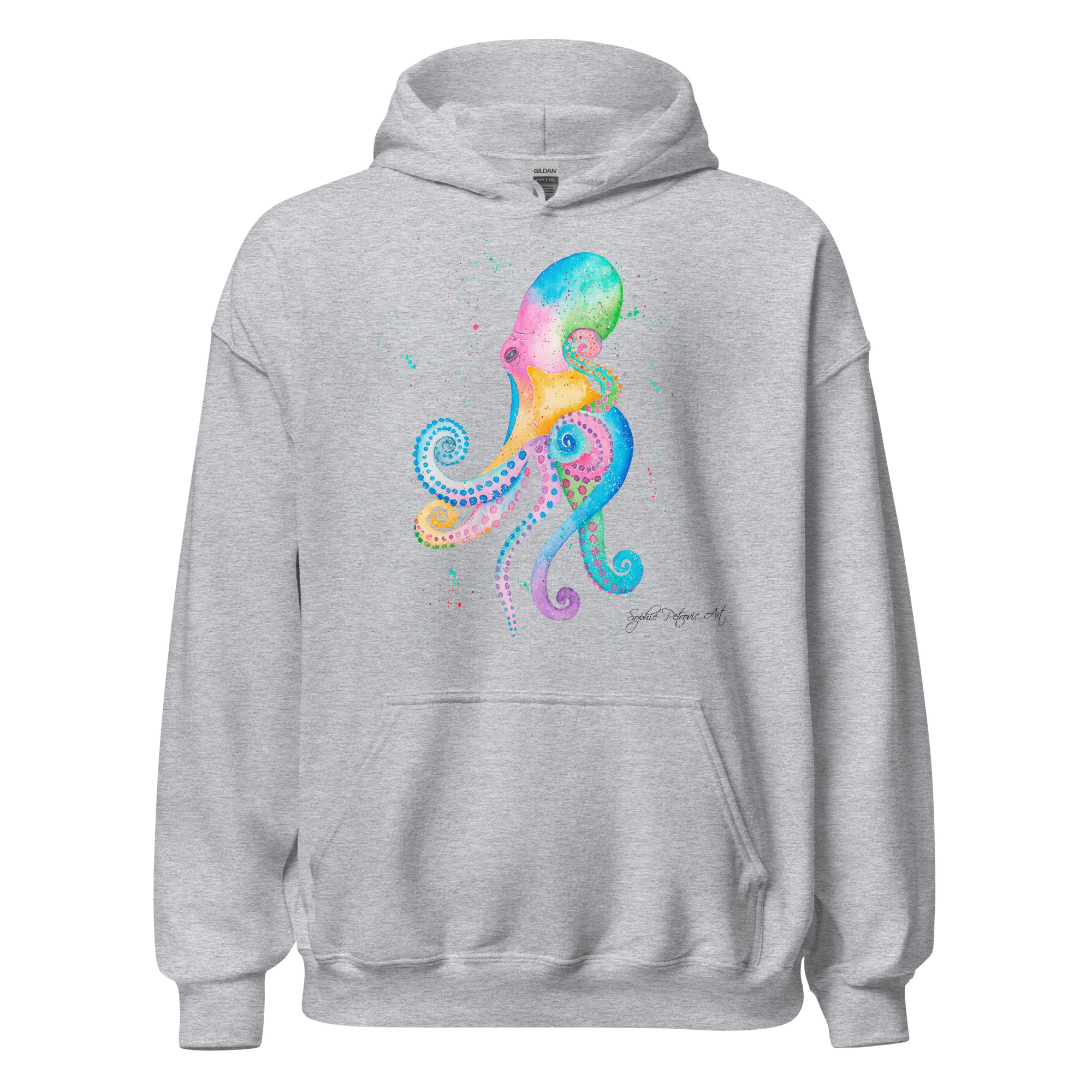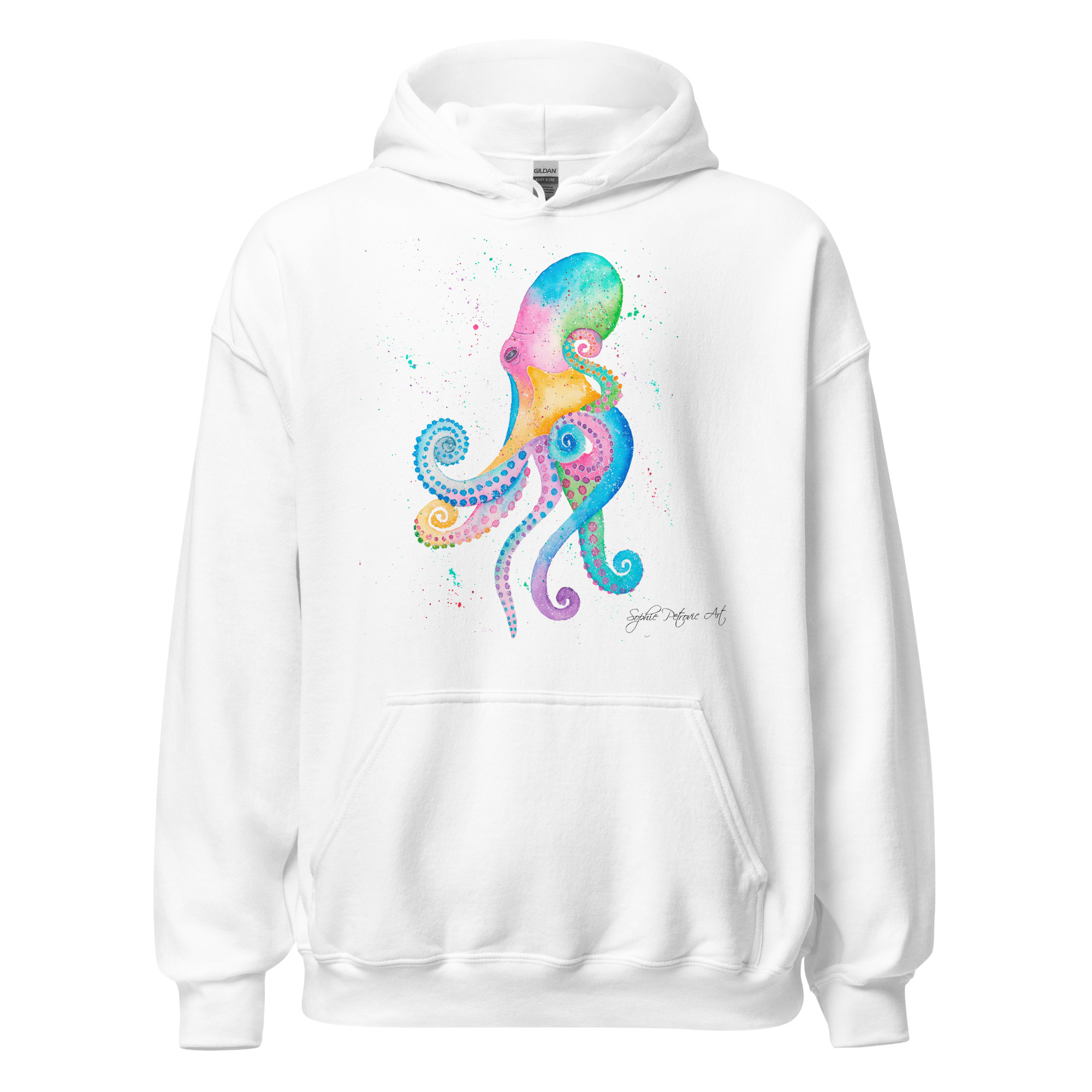 Everyone needs a cozy go to hoodie to curl up in, so go for one that’s soft, smooth, and stylish. Featuring Opal The Octopus from our watercolour collection, this hoodie brings a soft blend of natural grace and vibrant, colourful elegance to your wardrobe. It’s the perfect choice for cooler evenings, coastal walks, or simply relaxing at home.