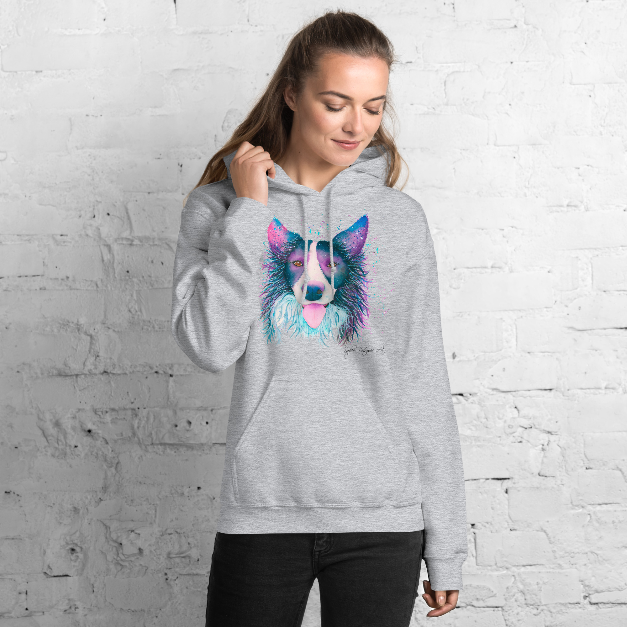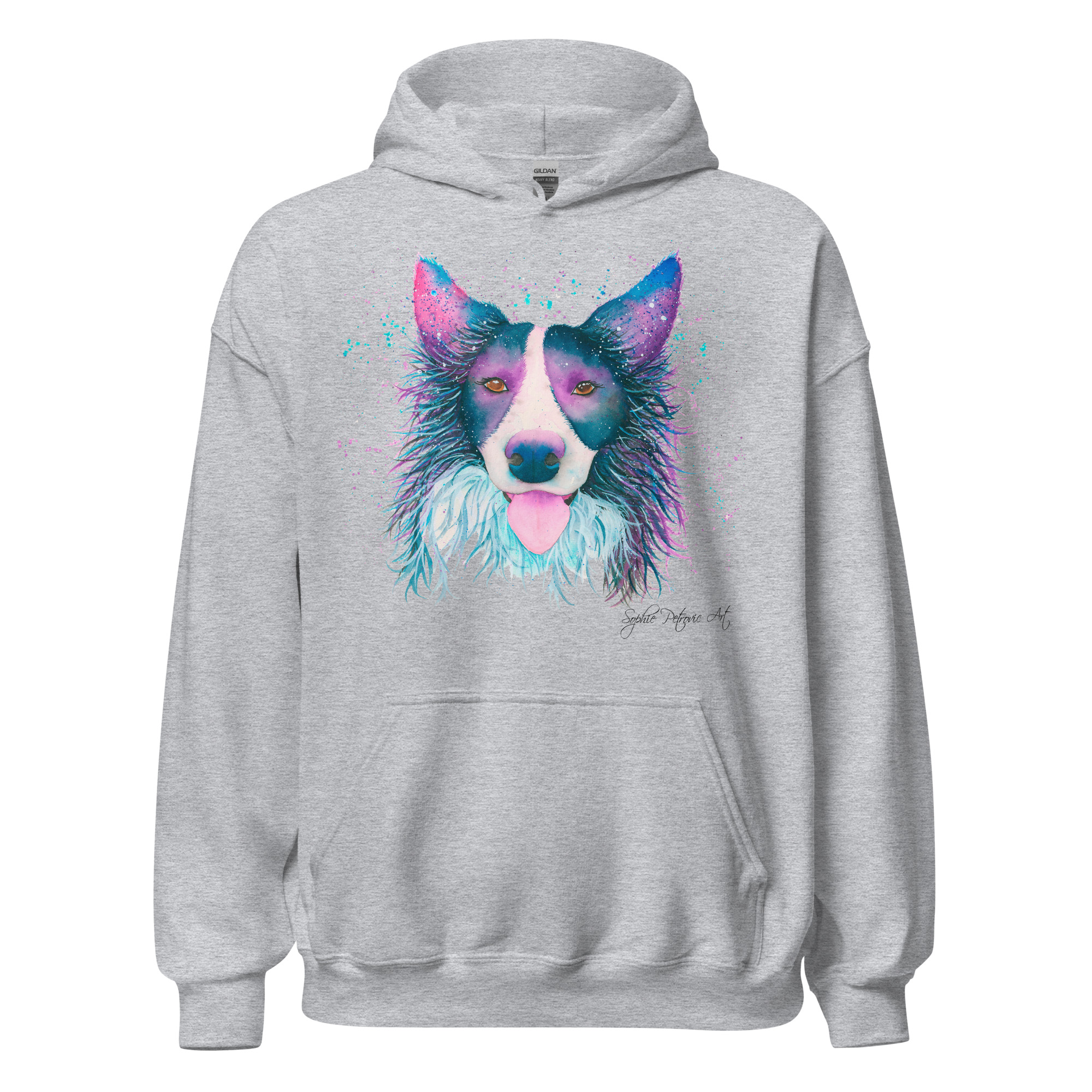 Everyone needs a cozy go to hoodie to curl up in, so go for one that’s soft, smooth, and stylish. Featuring Pepper The Collie from our watercolour collection, this hoodie brings a soft blend of natural grace and vibrant, colourful elegance to your wardrobe. It’s the perfect choice for cooler evenings, coastal walks, or simply relaxing at home.