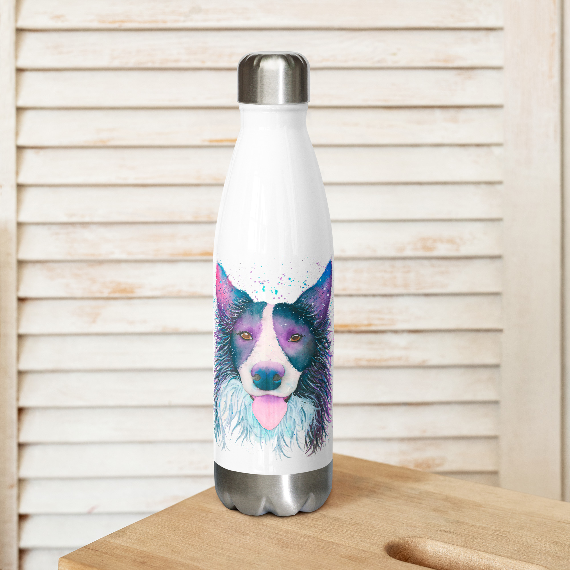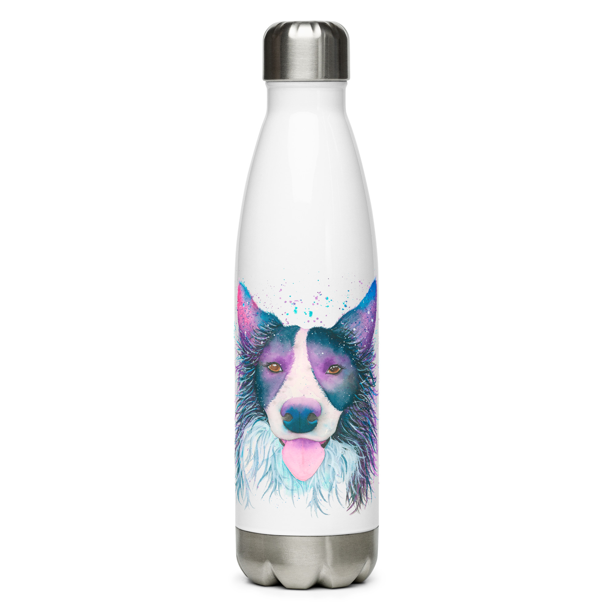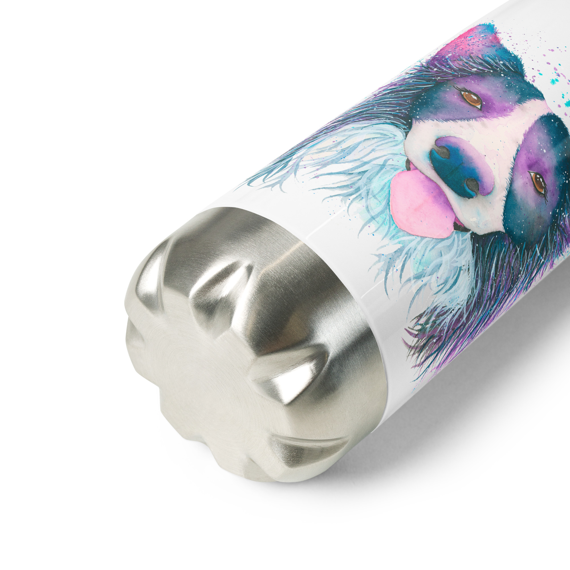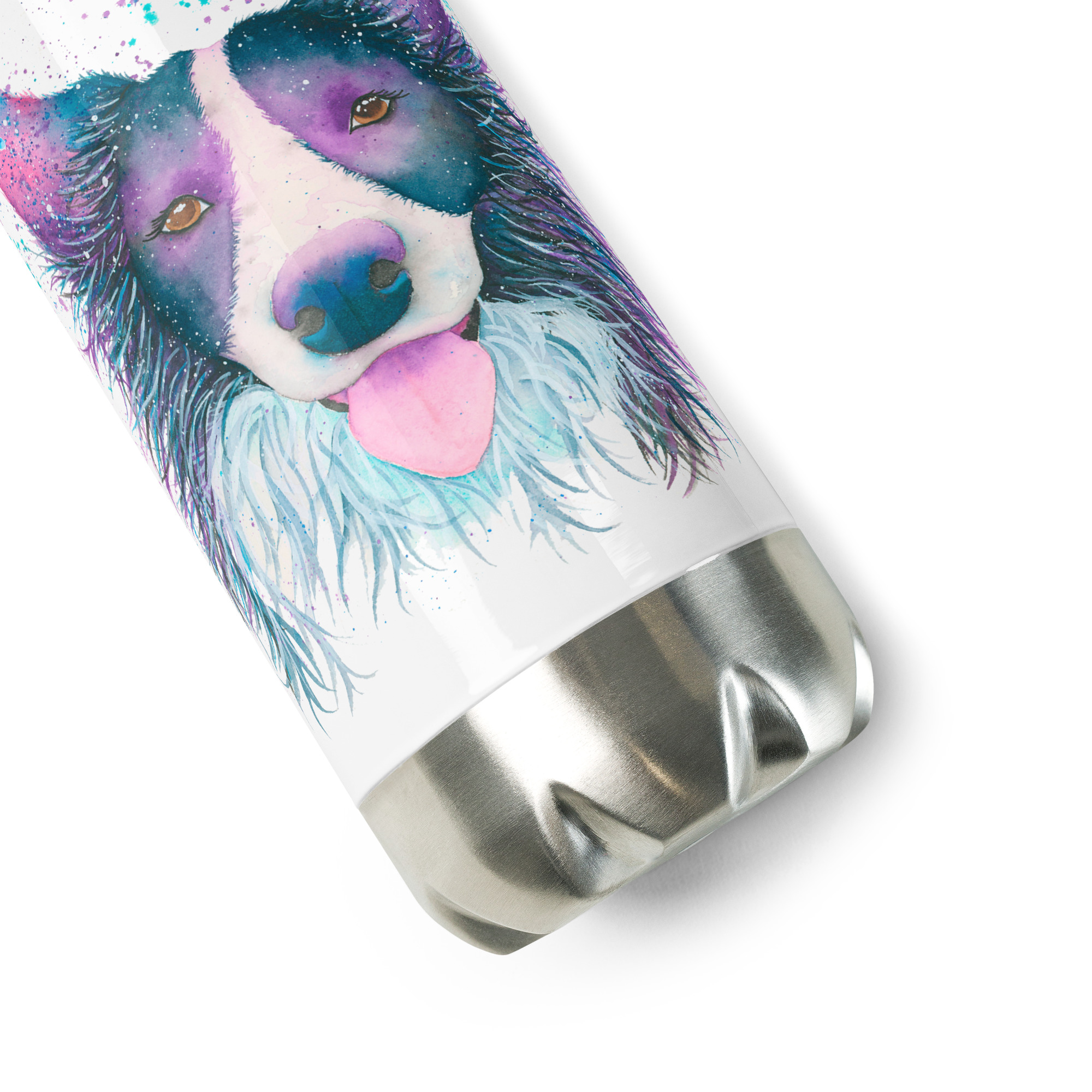 Charming stainless steel water bottle featuring Pepper the Border ColliePepper The Collie water bottle