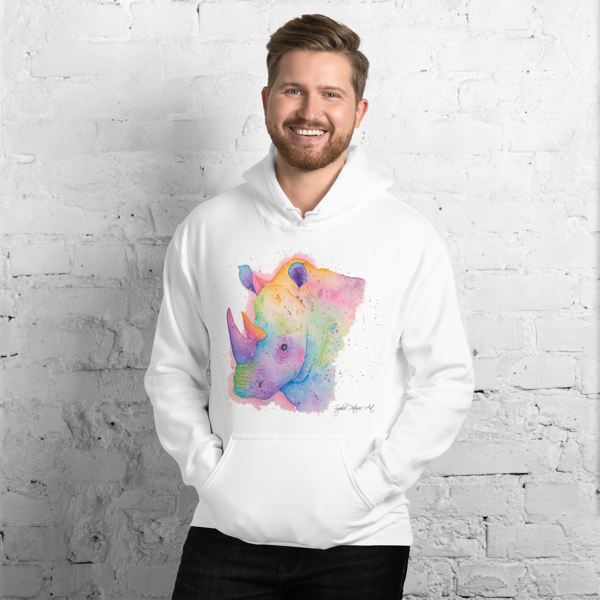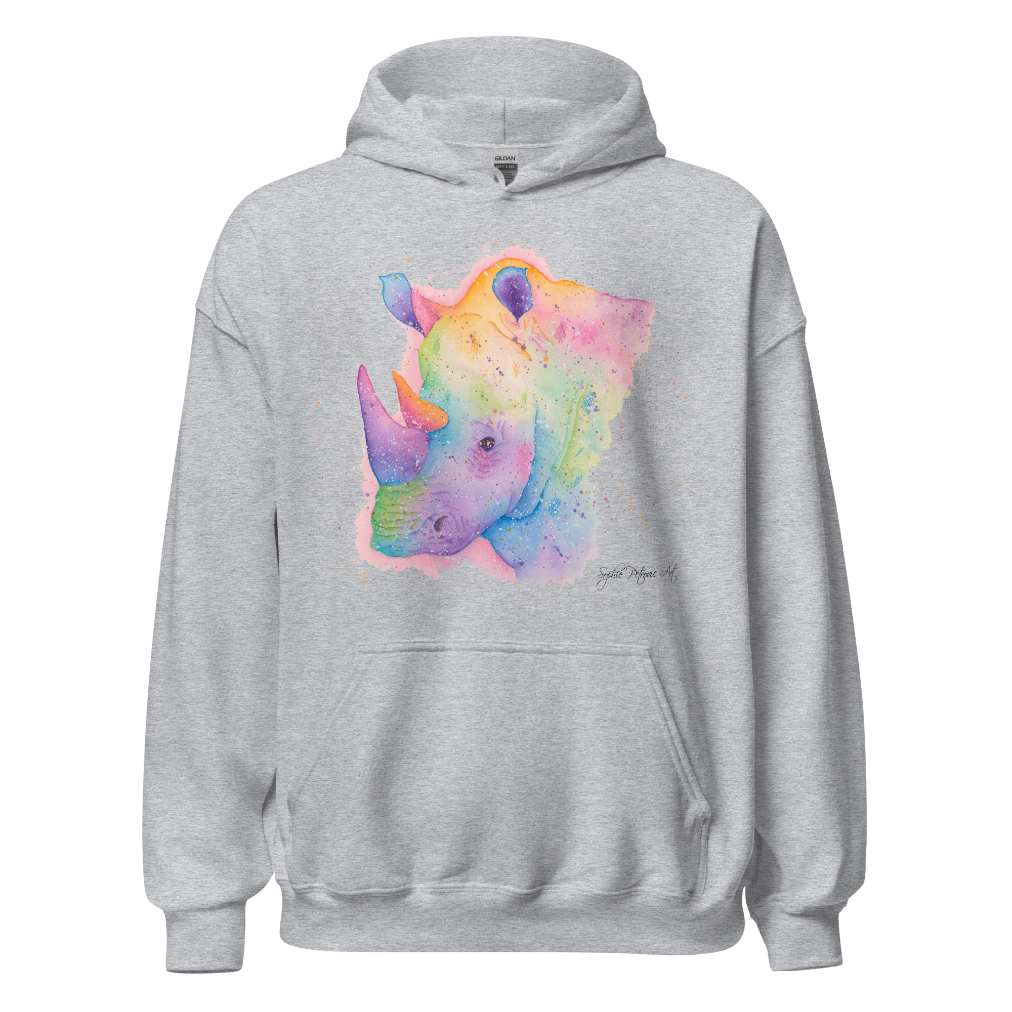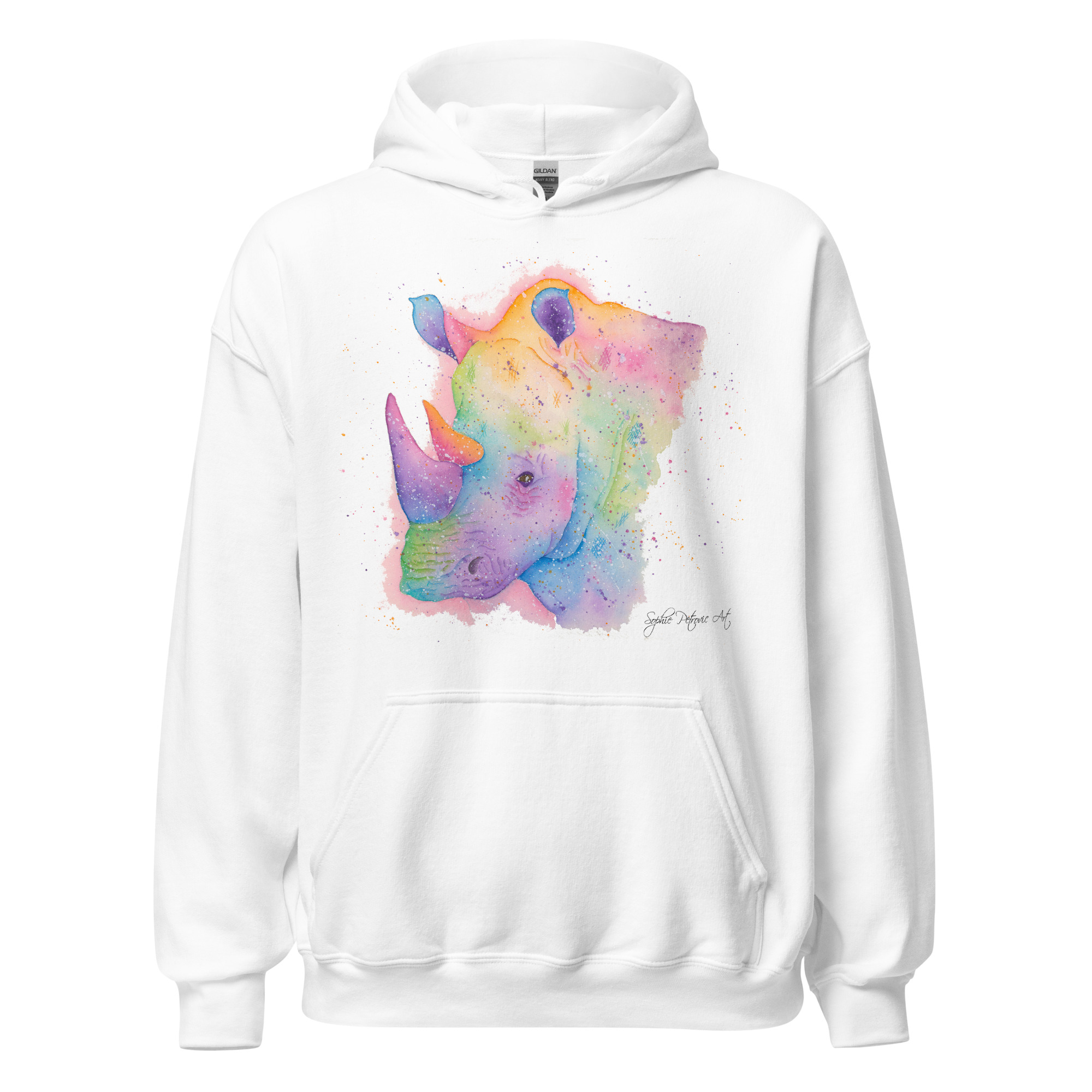 Everyone needs a cozy go to hoodie to curl up in, so go for one that’s soft, smooth, and stylish. Featuring Rupert The Rhino from our watercolour collection, this hoodie brings a soft blend of natural grace and vibrant, colourful elegance to your wardrobe. It’s the perfect choice for cooler evenings, coastal walks, or simply relaxing at home.