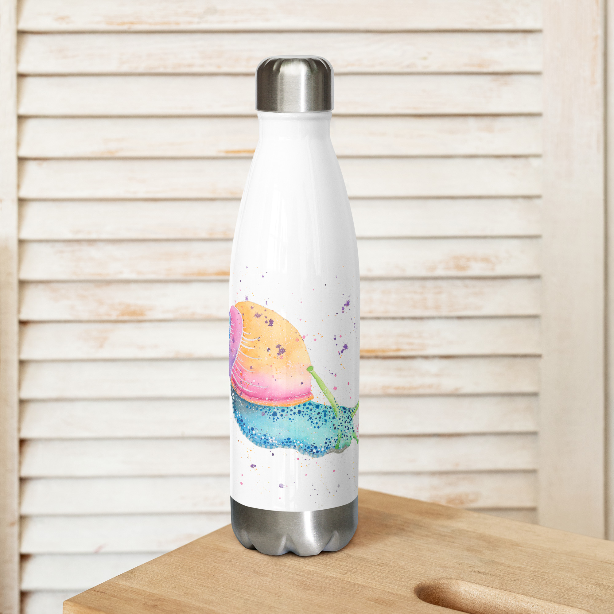 Featuring Sid The Snail from our watercolour collection, this bottle brings a splash of garden inspired charm to your hydration goals.