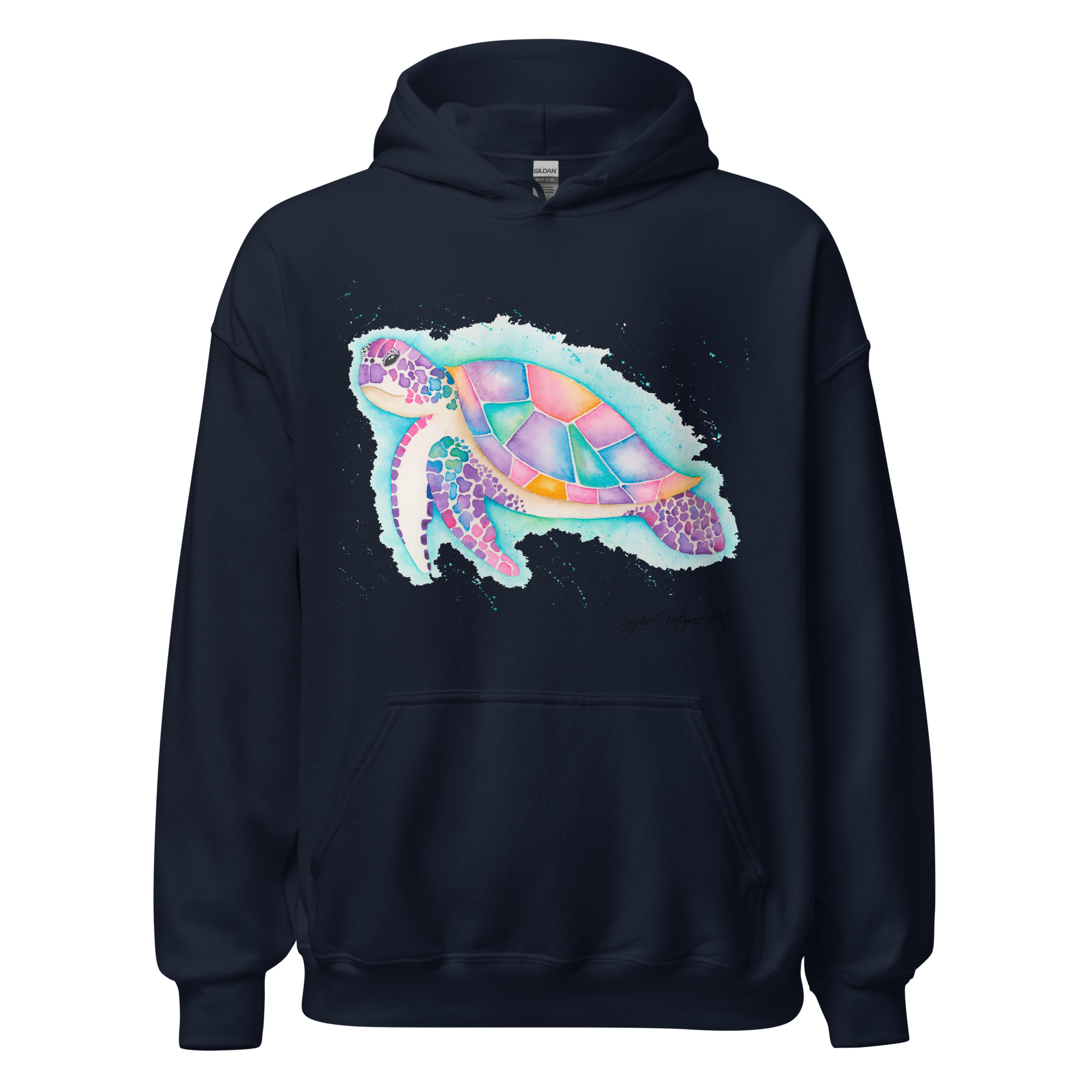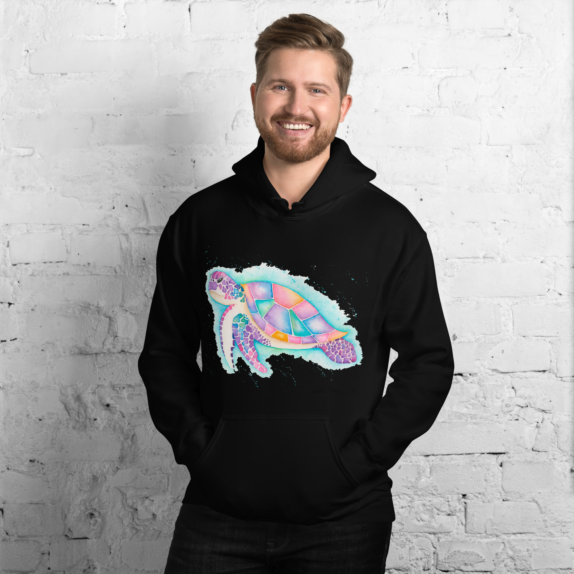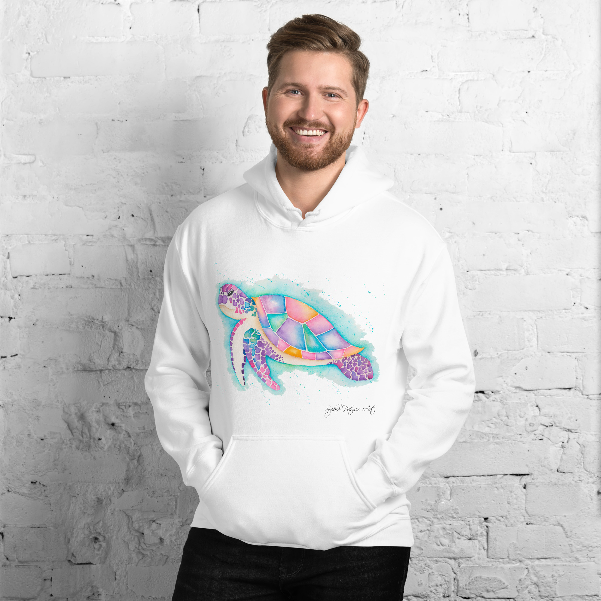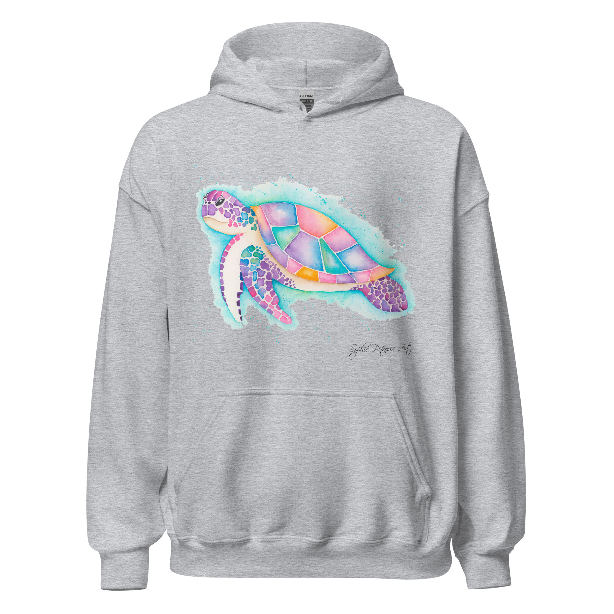 You said Adults' unisex sea turtle hoodie featuring Tallulah the Turtle, a vibrant watercolour design with a front pouch pocket by Sophie PetrovicTallulah The Turtle Hoodie