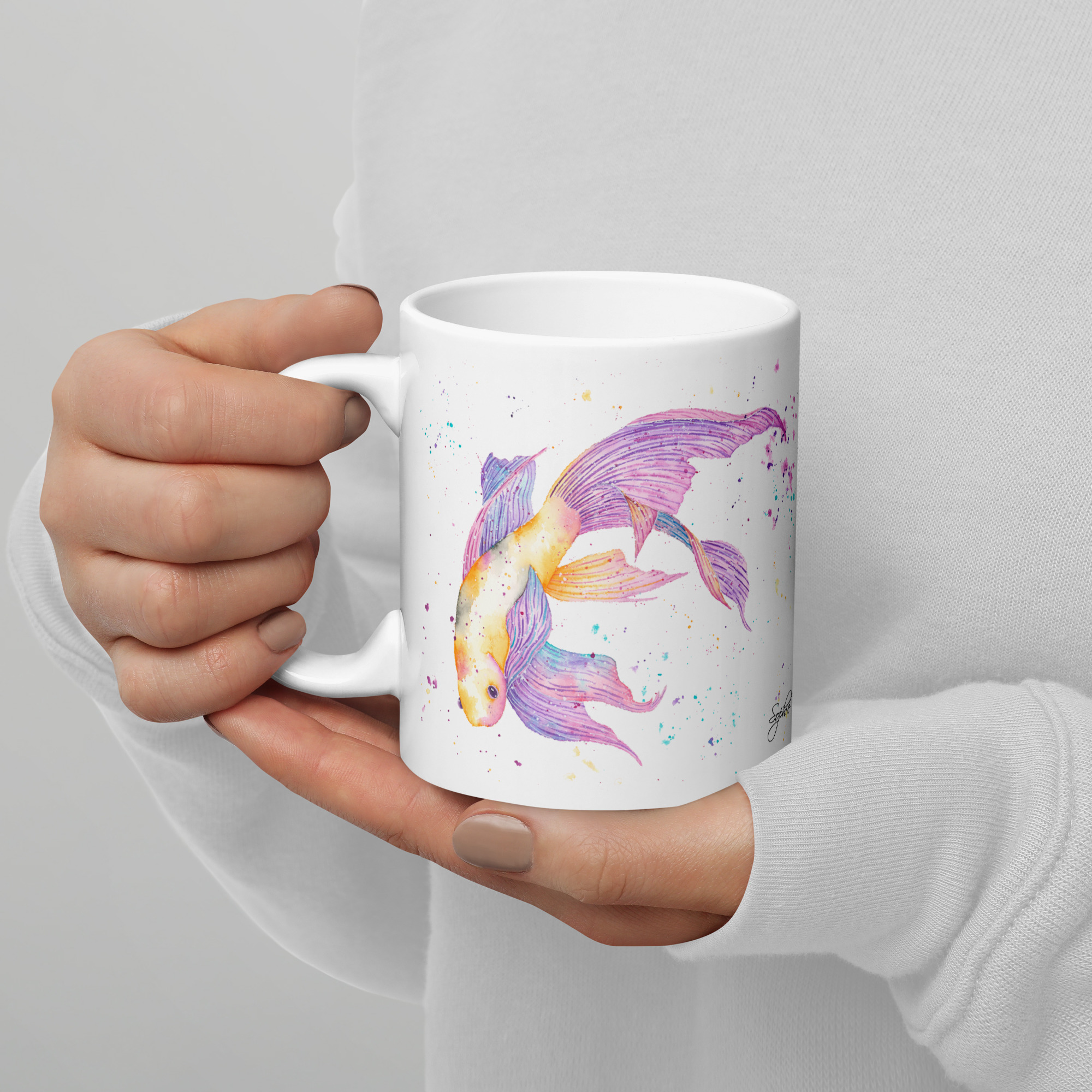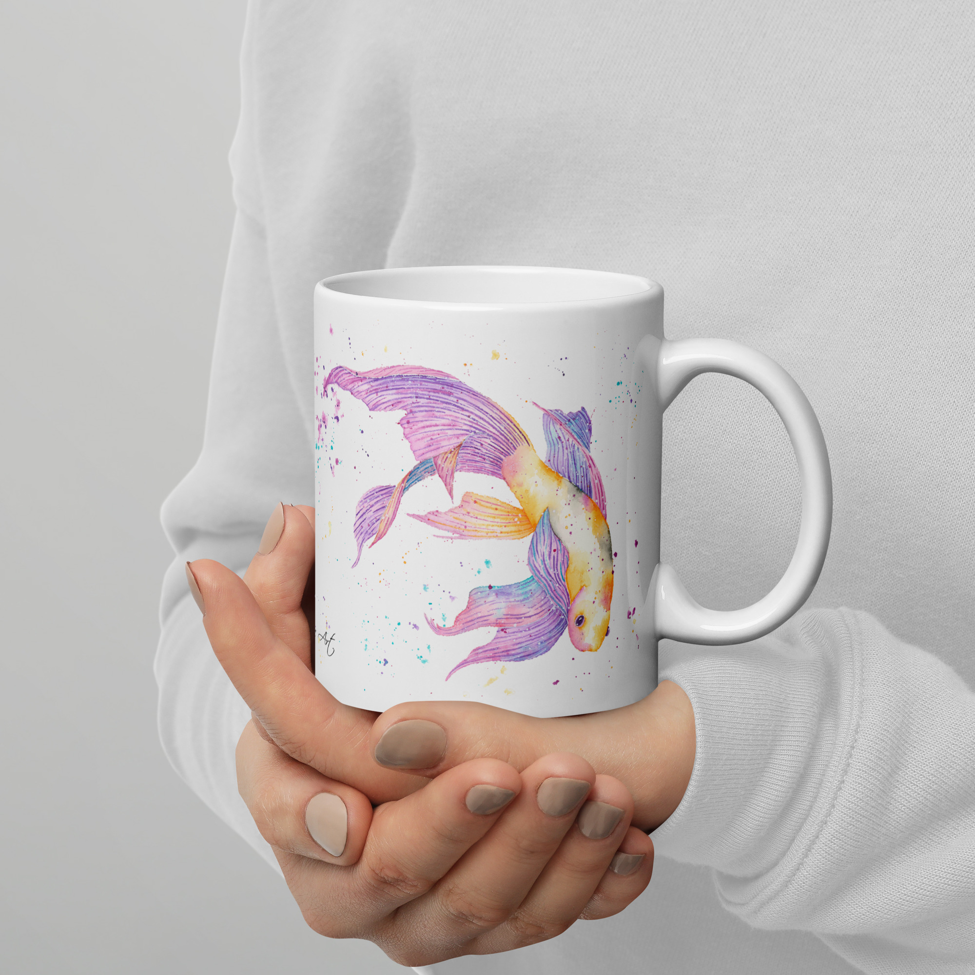 Whether you are a nature lover or just want to brighten up your desk, this mug brings a touch of warmth to every sip. It features a vibrant watercolour illustration that I painted to capture the graceful and serene spirit of these beautiful fish. This mug is a lovely way to bring a little bit of nature and a sense of tranquility into your home or office. It is a thoughtful choice for birthdays, “thank you” gifts, or a special treat for anyone who loves the beauty of aquatic life.